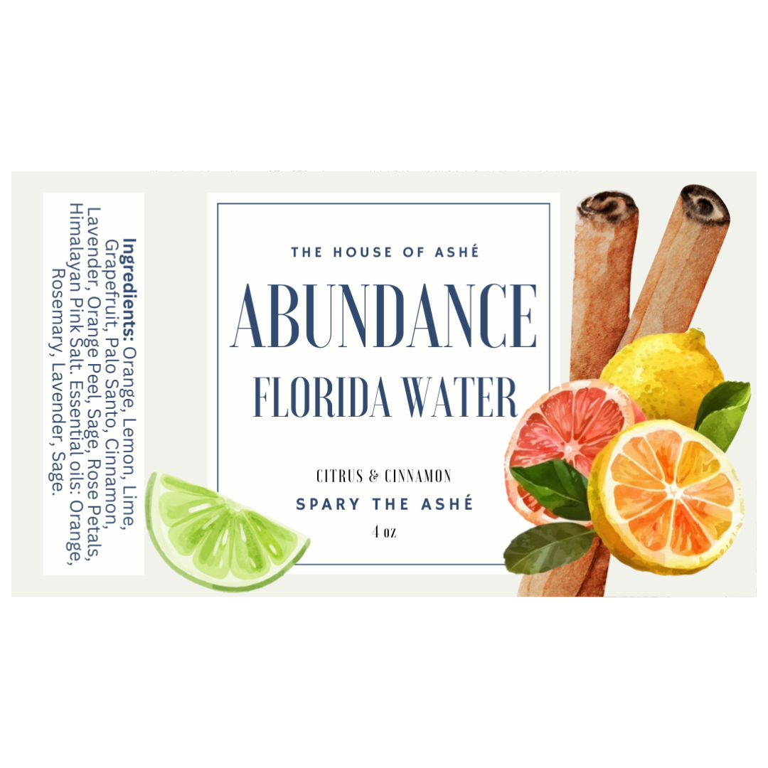 Crafted with intention by The House of Ashé, our Abundance Florida Water is a potent blend of high-vibrational botanicals and essential oils, designed to attract prosperity, clarity, and harmony into your life. Presented in a convenient 4 oz glass spray bottle, this sacred water is a spiritual ally for rituals, cleansing, and daily use to manifest abundance in all its forms.