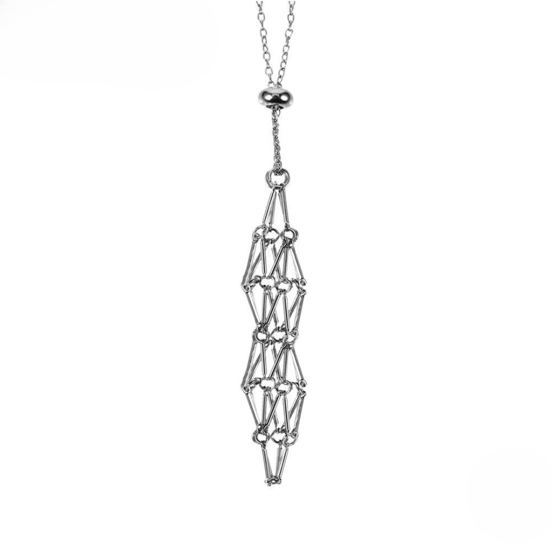 Unlock the magic of transformation with this versatile Metal Mesh Cage Necklace, designed to hold your favorite crystals securely within its intricate wireframe. The cage pendant, available in silver or gold tones, allows you to switch out crystals effortlessly, empowering you to align with different energies as you choose. Offered in medium and large sizes, this enchanting accessory adapts to your style and intention, whether you're grounding yourself with smoky quartz or enhancing intuition with amethyst. The necklace is a powerful, customizable talisman, inviting you to carry the energy of your chosen stone close to your heart. Crystal not included.