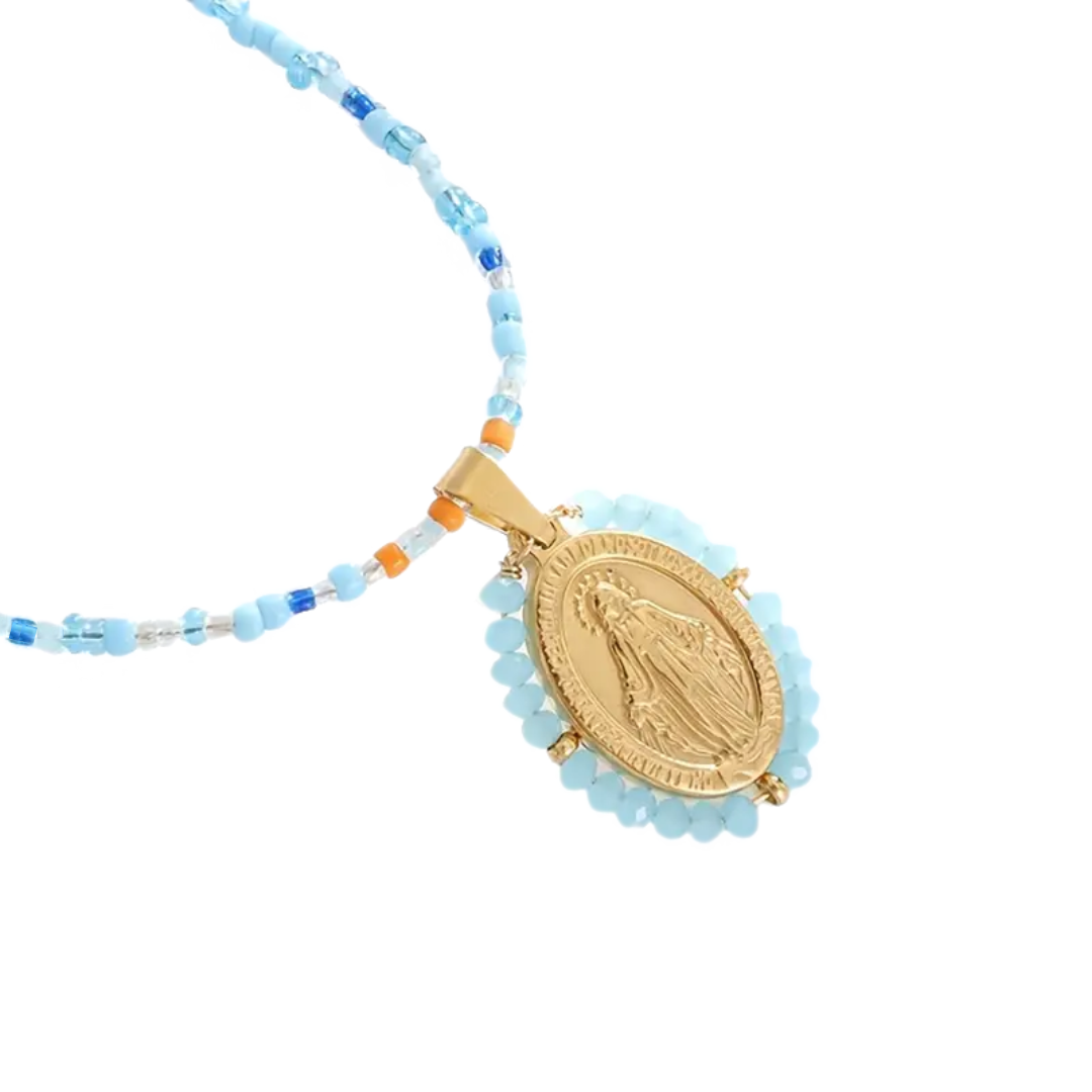 Bohemian Beaded Virgin Mary Devotion Necklace