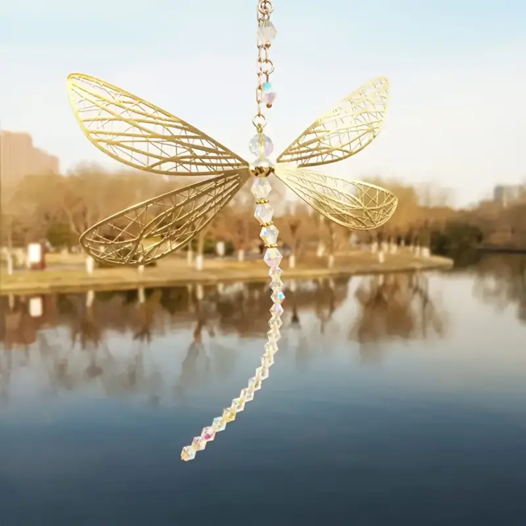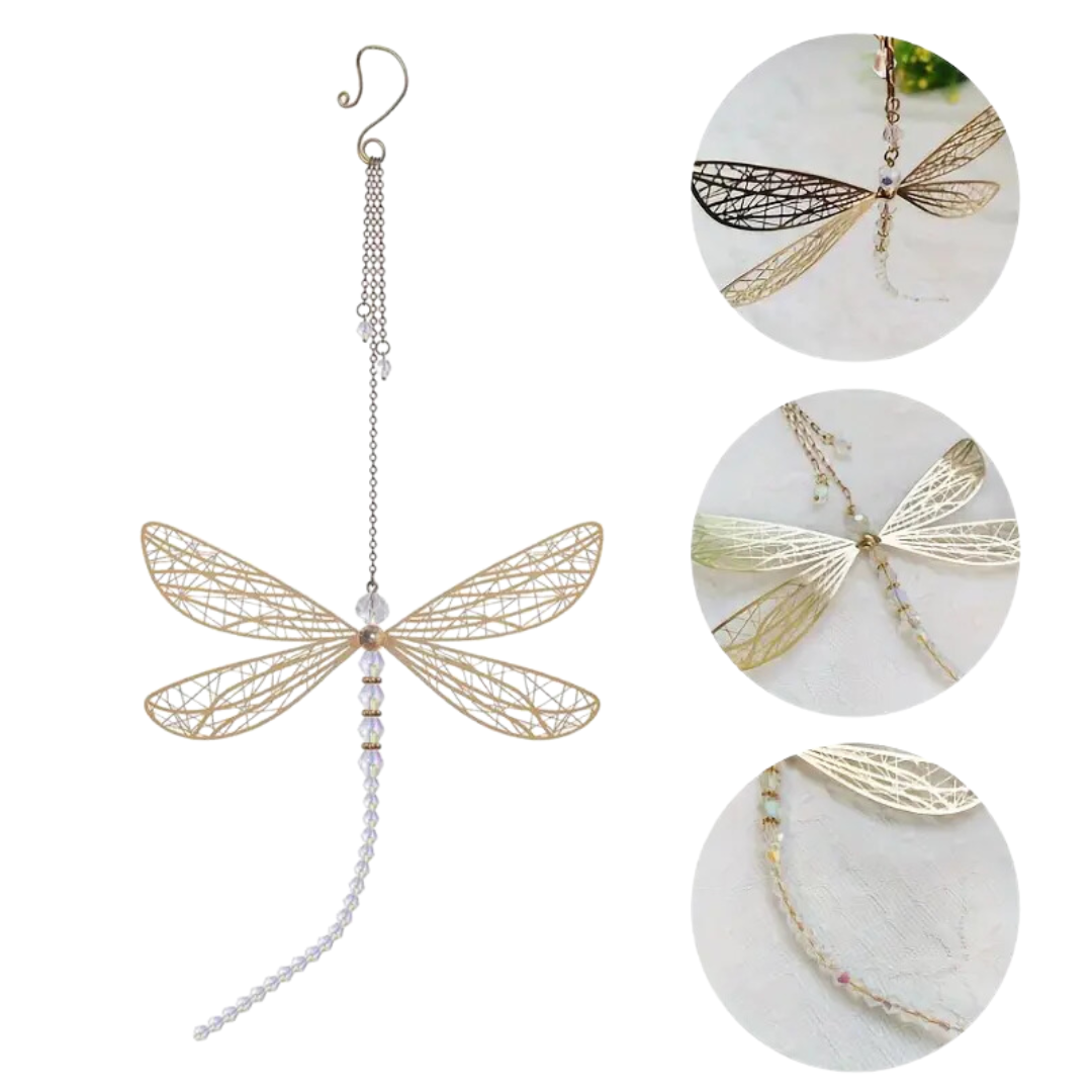 This ethereal golden dragonfly charm embodies the essence of transformation, wisdom, and light. Crafted with delicate metal wings that shimmer like ancient secrets caught in sunlight, this piece serves as both decor and spiritual talisman. The intricately woven wings are a symbol of change, reminding us of the endless possibilities that lie beyond the veil of the present.