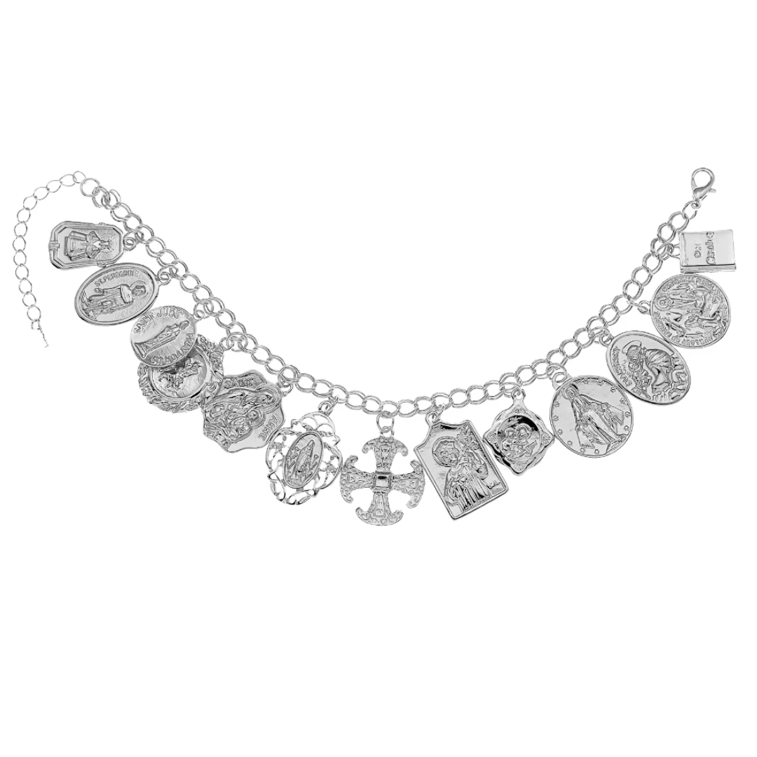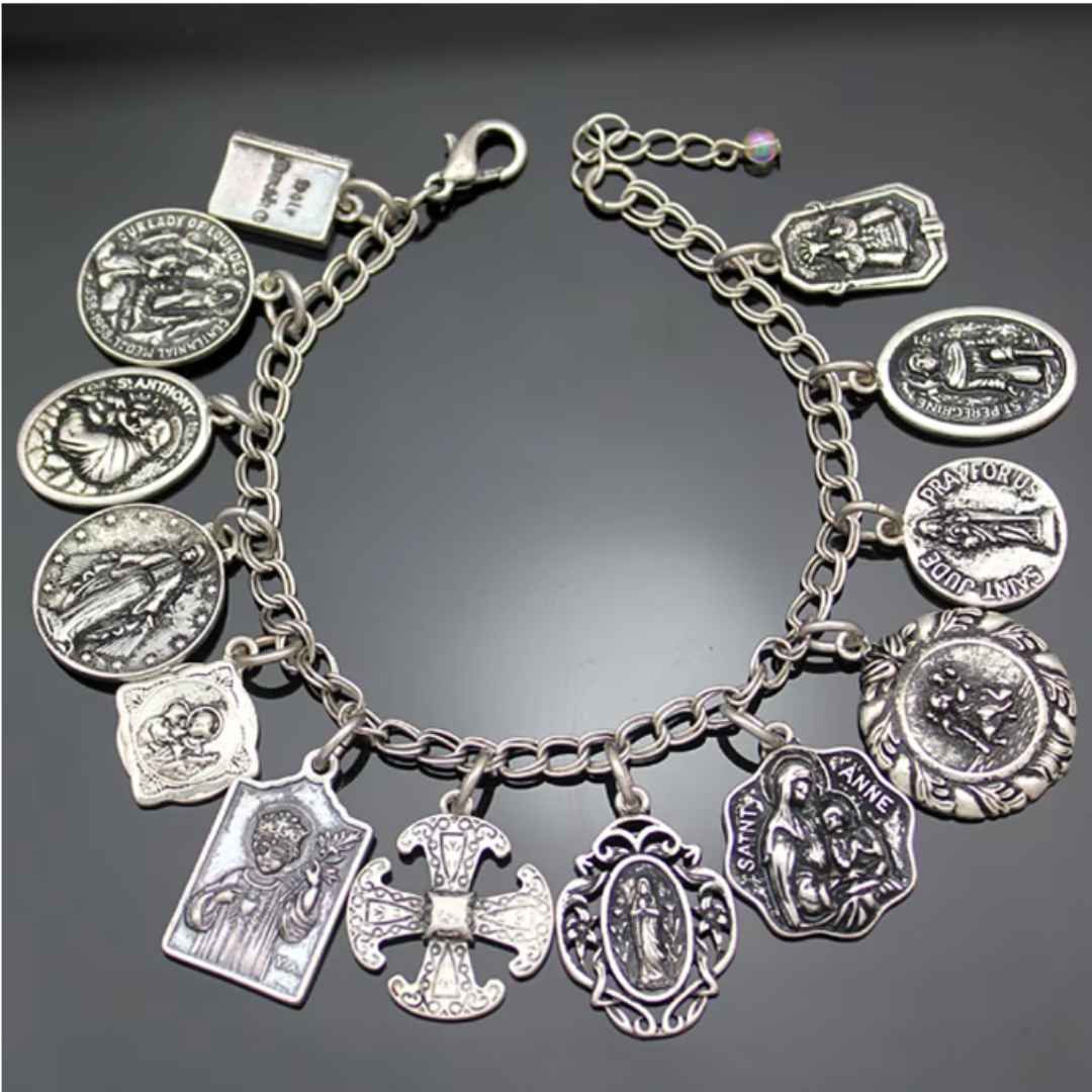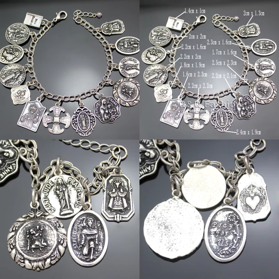 Vintage Style Catholic Saints Medal Charm Bracelet
