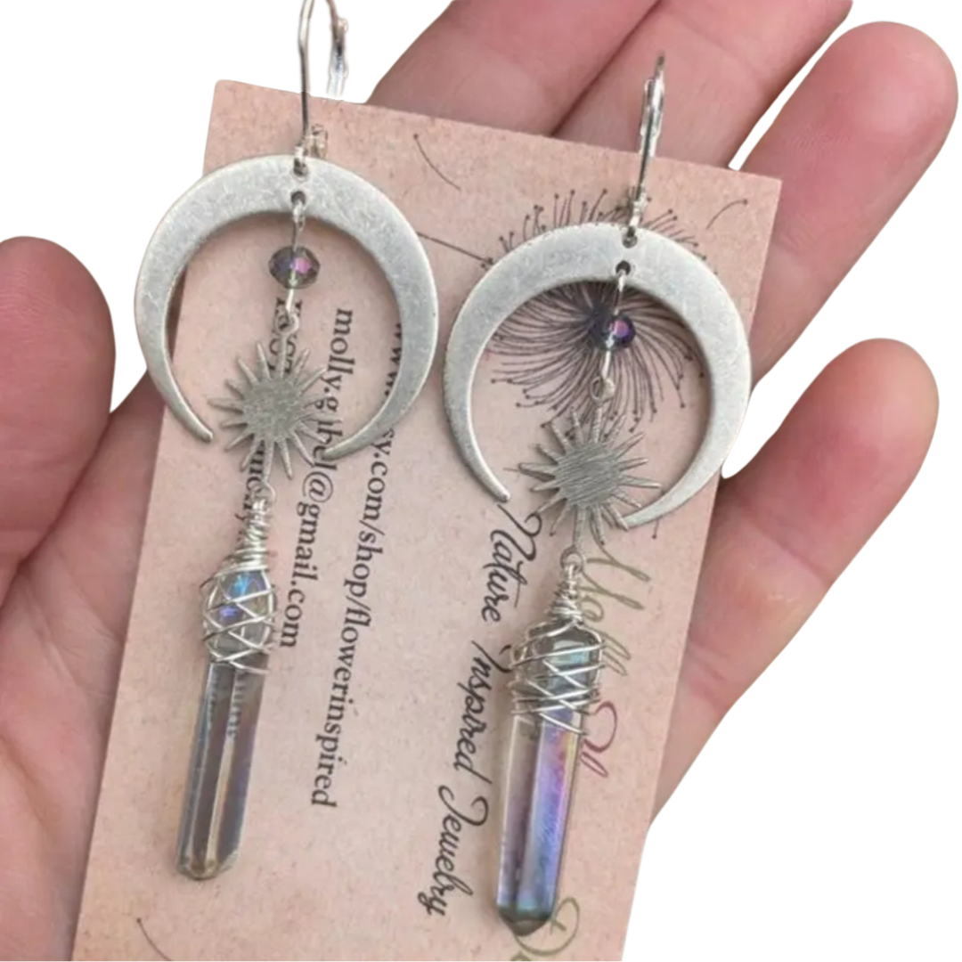 Celestial Harmony Earrings – Lunar and Solar Balance with Crystal Energy