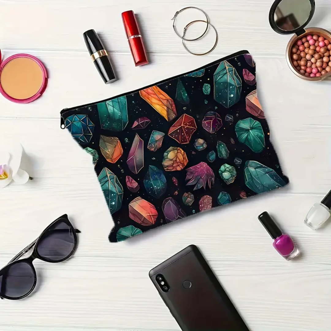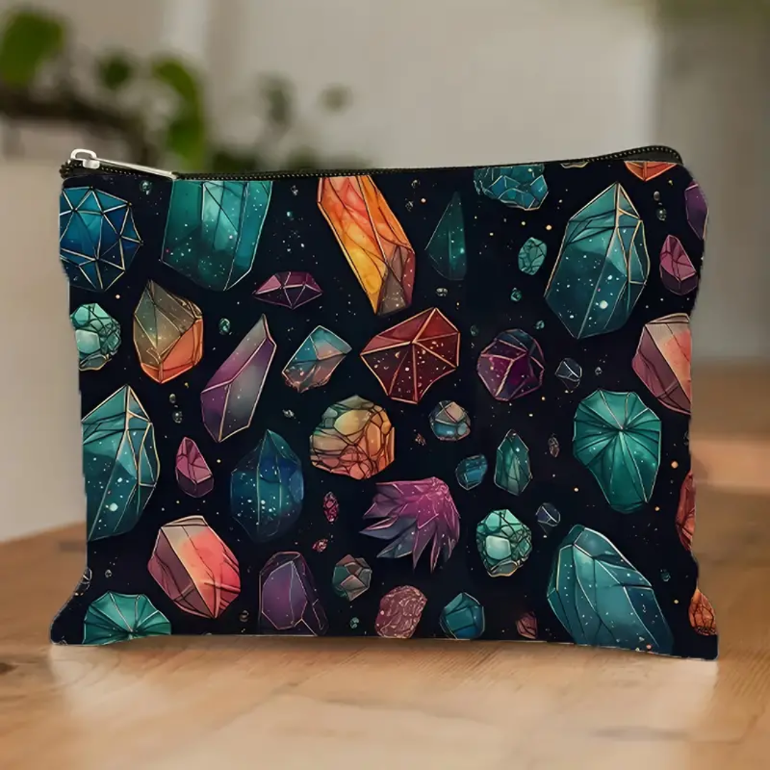 Waterproof, high-capacity cosmetic pouch. Ideal travel organizer & unique gift for crystal lovers, geologists, rock enthusiasts