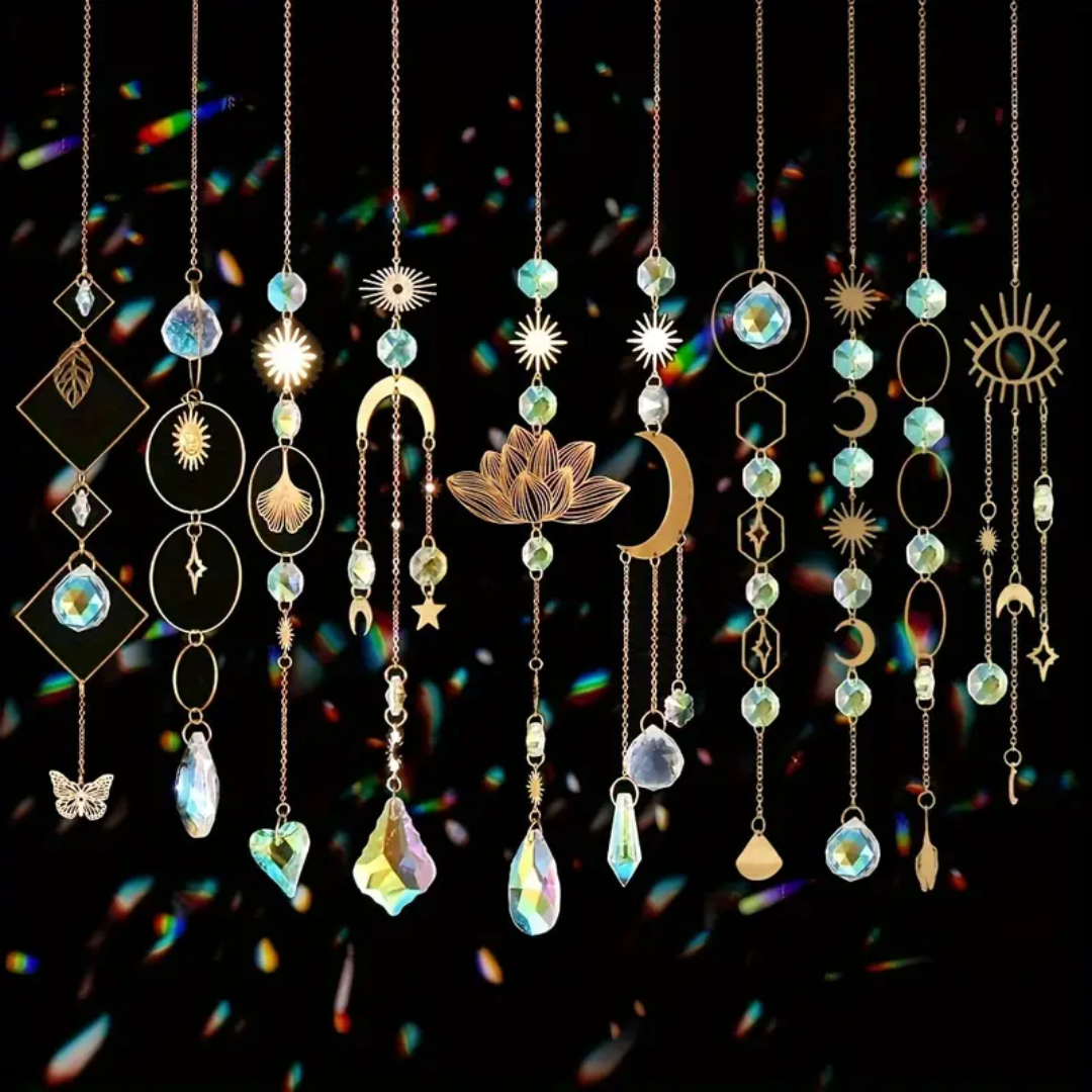 - Golden Moonlight Suncatcher: A golden crescent moon combined with dangling stars, fostering dreams and inspiration.