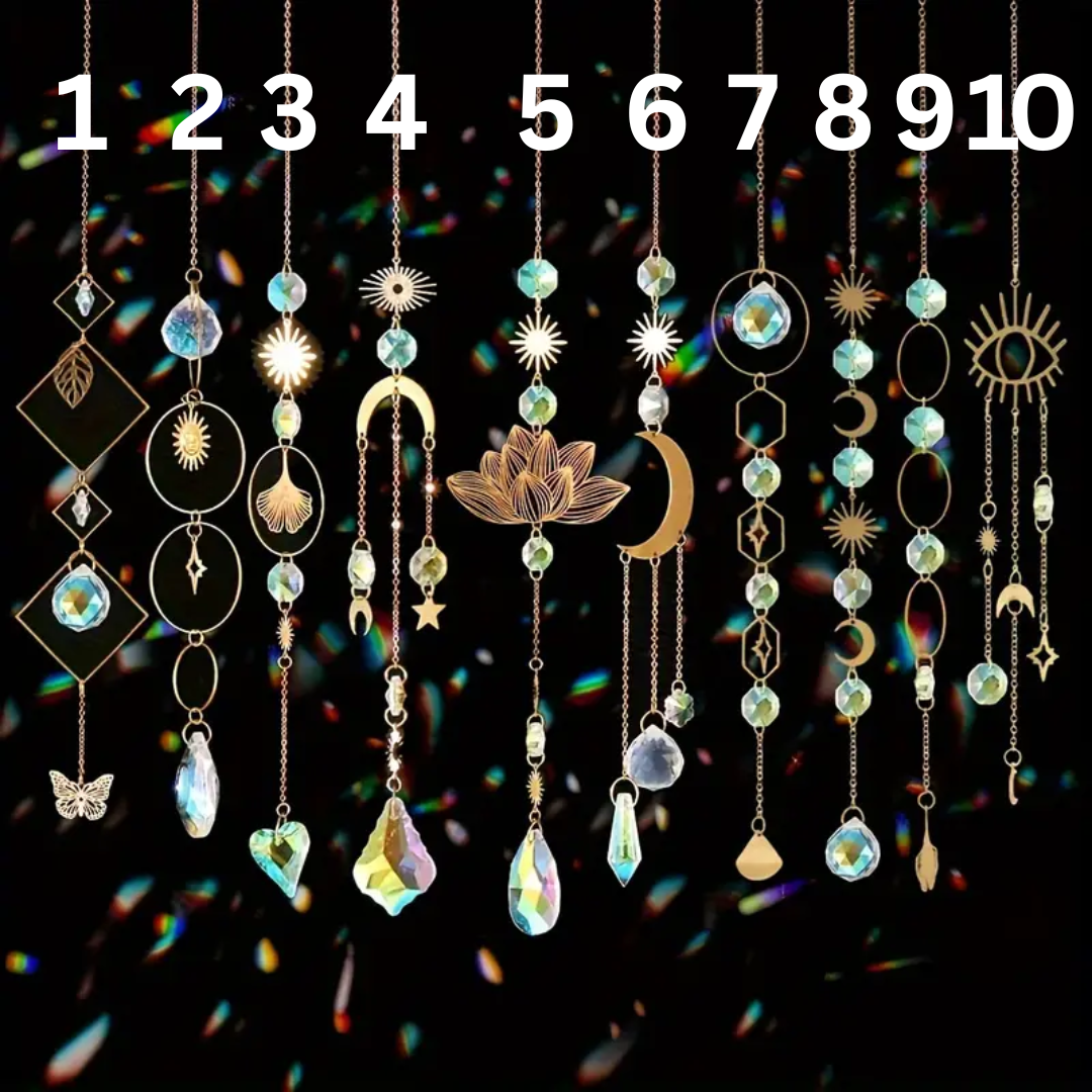 - Circular Harmony Suncatcher: Double circles represent unity and flow, adorned with radiant crystals for a continuous stream of positive energy.