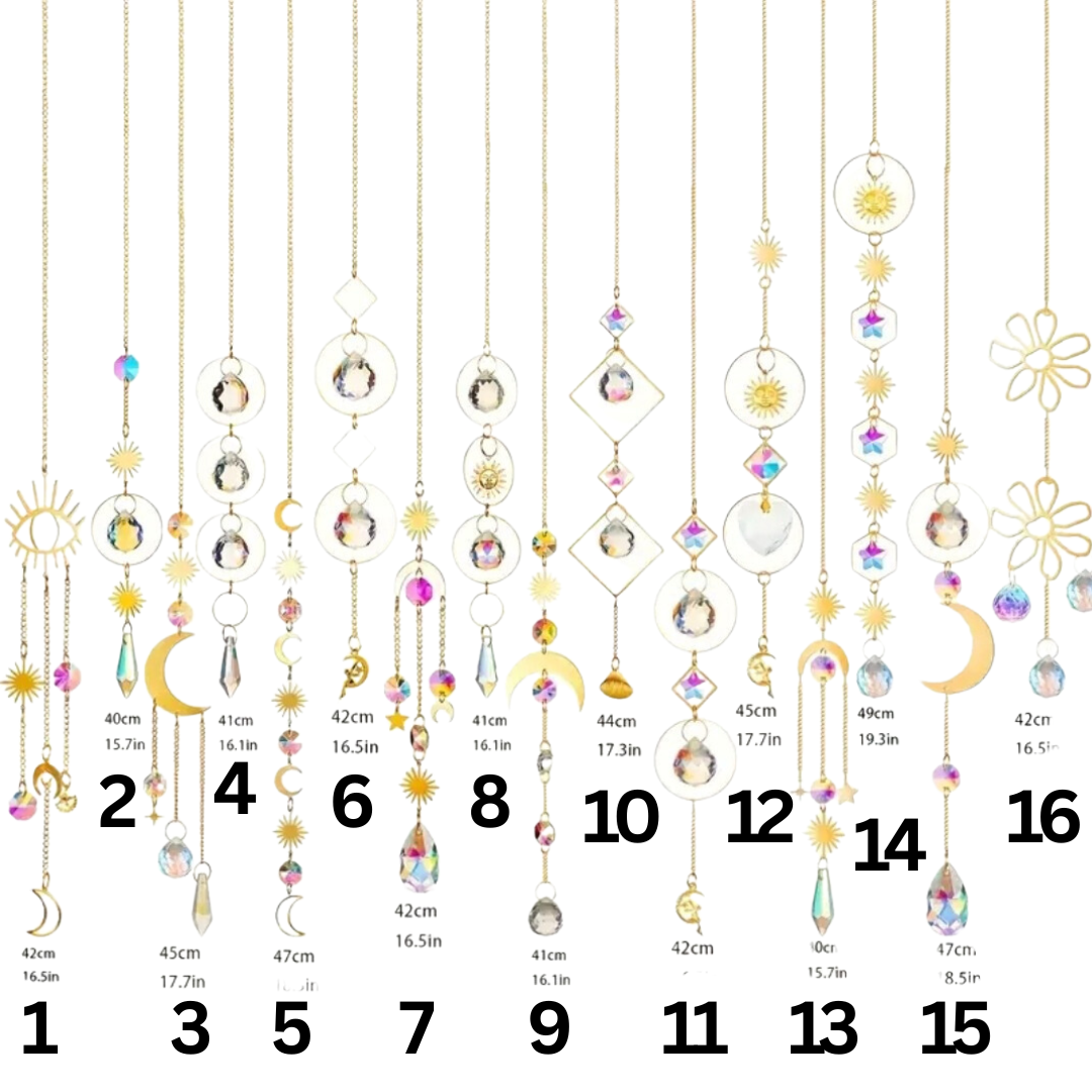 - 3. Crescent Harmony Charm (45cm | 17.7in): Dual crescents and rainbow crystals promote balance and inner peace.