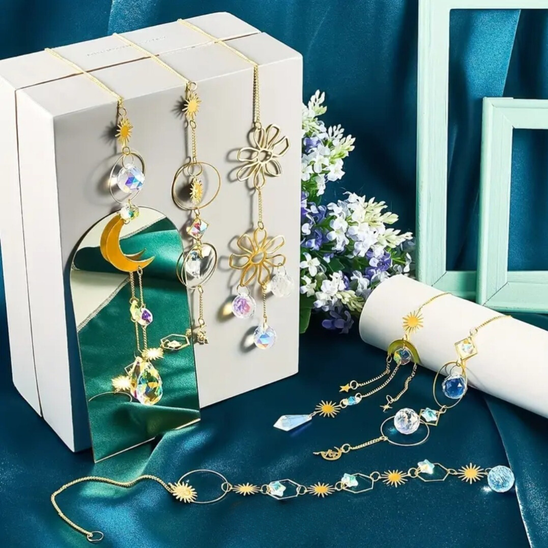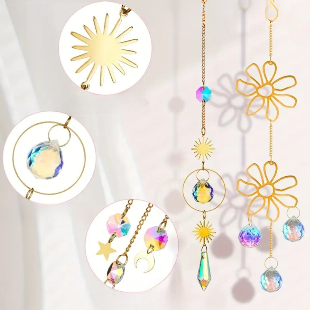 Individually crafted to channel the radiant energy of the cosmos, each suncatcher in the Celestial Lightkeepers Collection is a unique magical tool designed to infuse your space with positivity, light, and enchantment. Featuring shimmering crystals, golden celestial motifs, and intricate designs, these pieces transform sunlight into vibrant rainbows, bringing beauty and energetic harmony to any room.