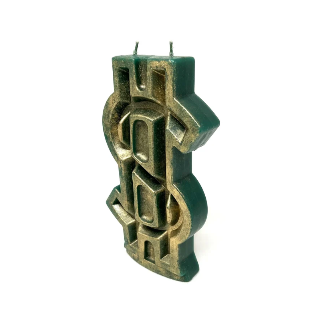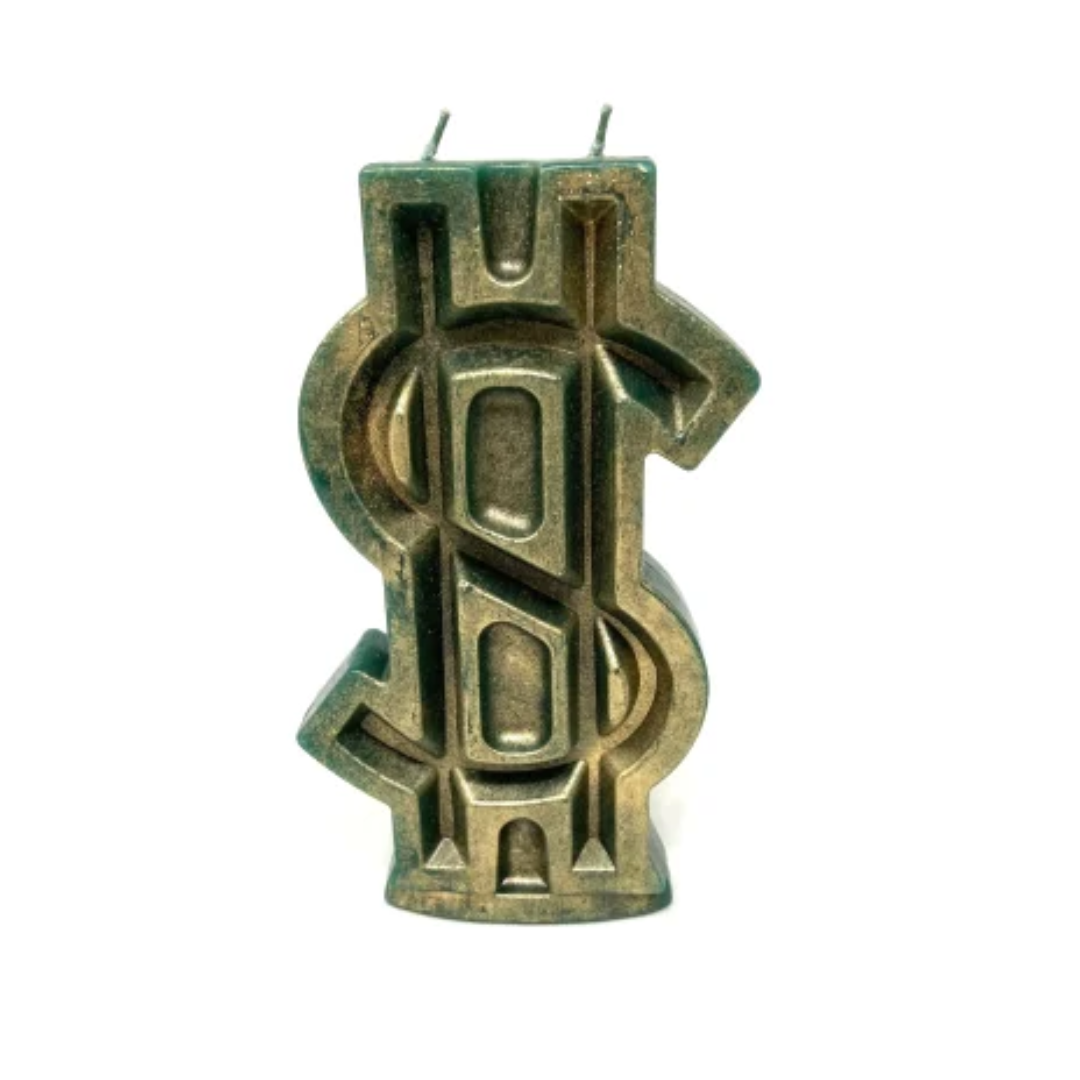 Manifest prosperity and unlock the flow of abundance with this XL Dollar Sign Ritual Candle. Crafted in a striking greenish-bronze wax, this oversized candle is designed for powerful money-drawing rituals and spells. Whether you're seeking wealth, business success, or financial stability, this candle serves as a beacon for attracting fortune and amplifying intentions.