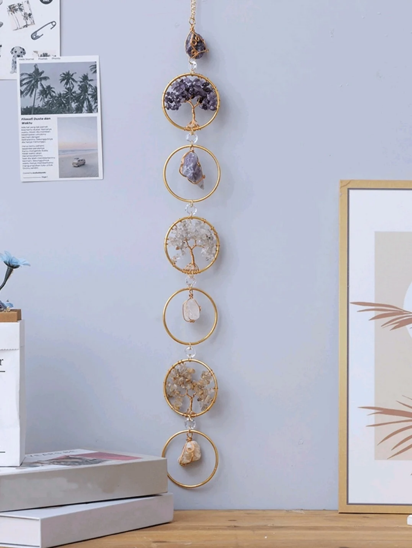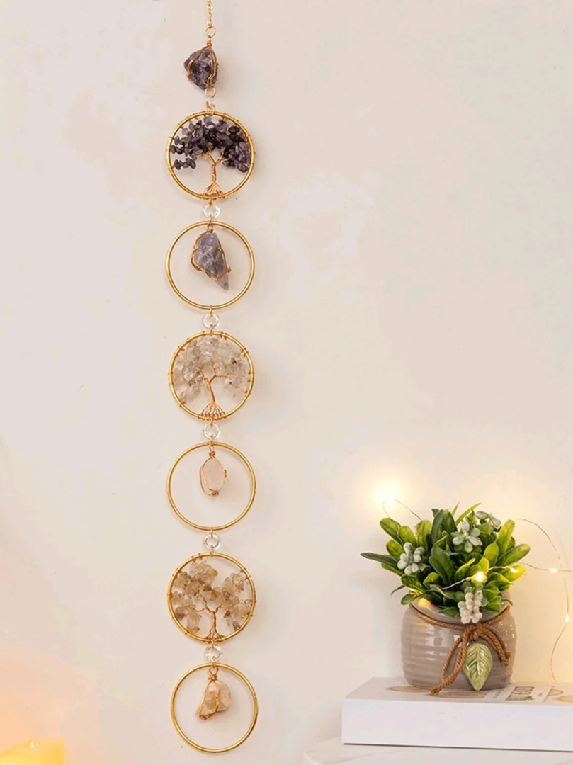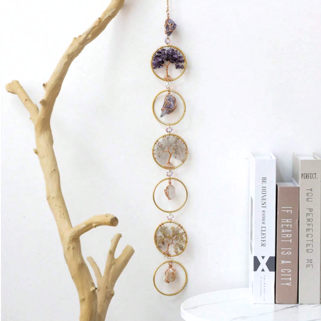 Crystal Elegance: Featuring shimmering amethyst, quartz, and citrine stones, this suncatcher creates an ethereal display of color and light when kissed by the sun. Each gemstone is unique, amplifying its healing and grounding properties.