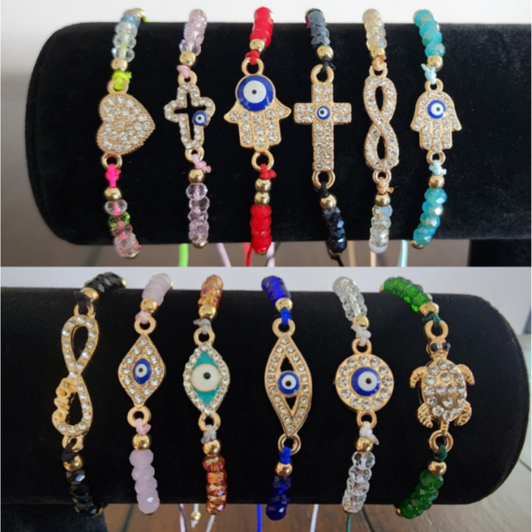 Adjustable Evil Eye Crystal Bracelet, Mal de Ojo Pulseras