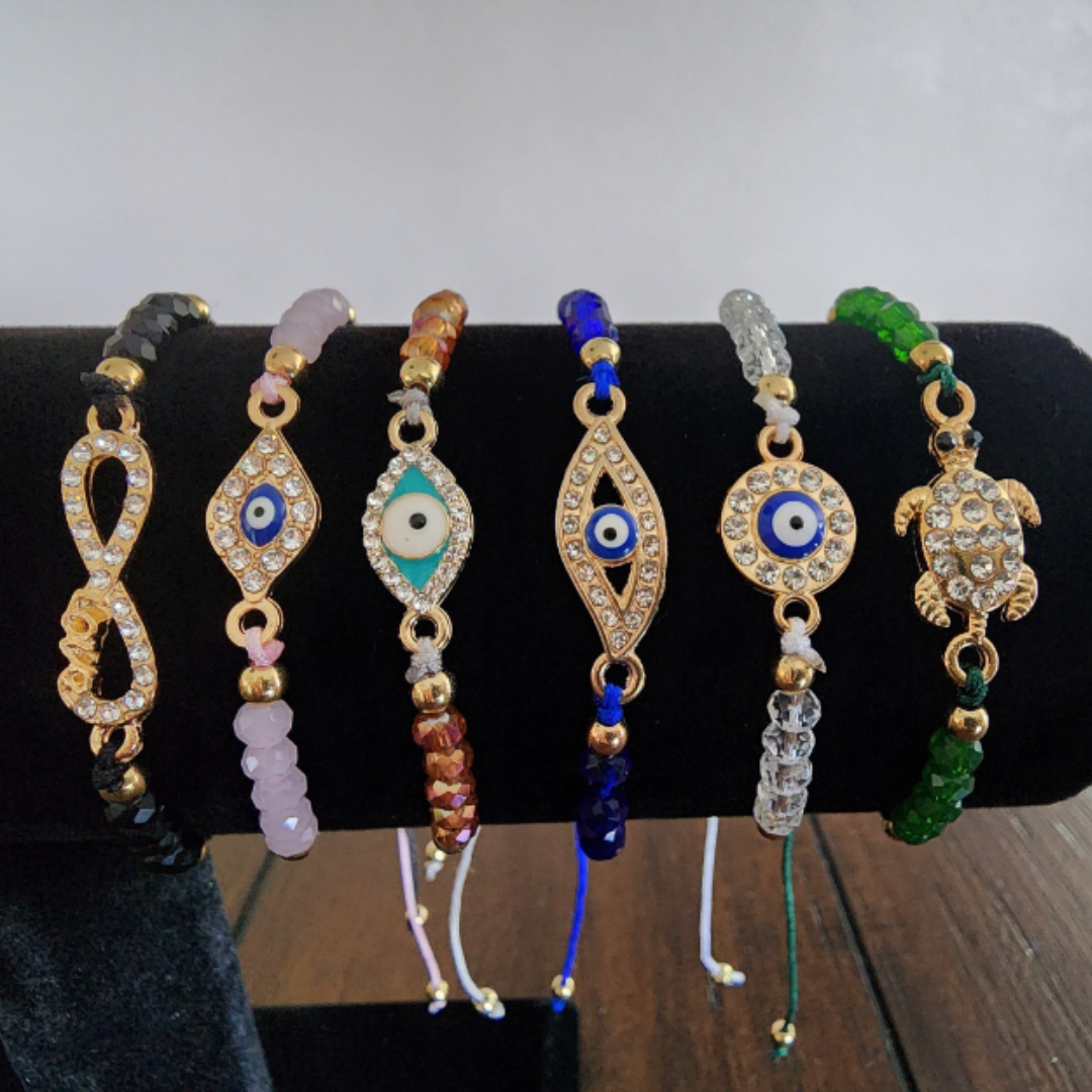 Adjustable Evil Eye Crystal Bracelet | Mal de Ojo Pulseras