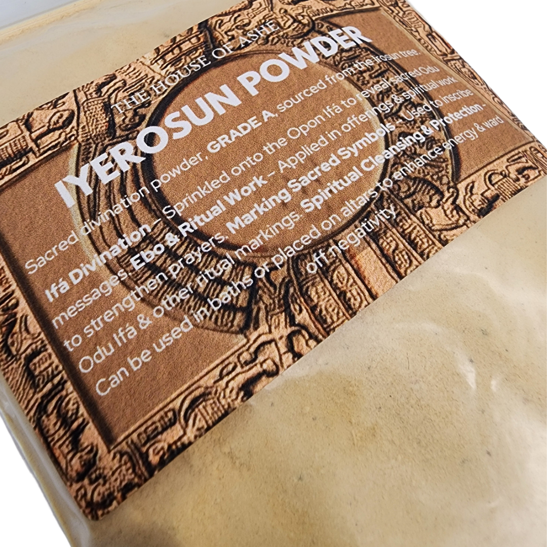 Iyerosun Powder is a sacred divination powder used in Ifá and Orisha spiritual practices. Sourced from the Irosun tree, this Grade A powder is traditionally used by Babalawos (Ifá priests) for divination, rituals, and spiritual empowerment.