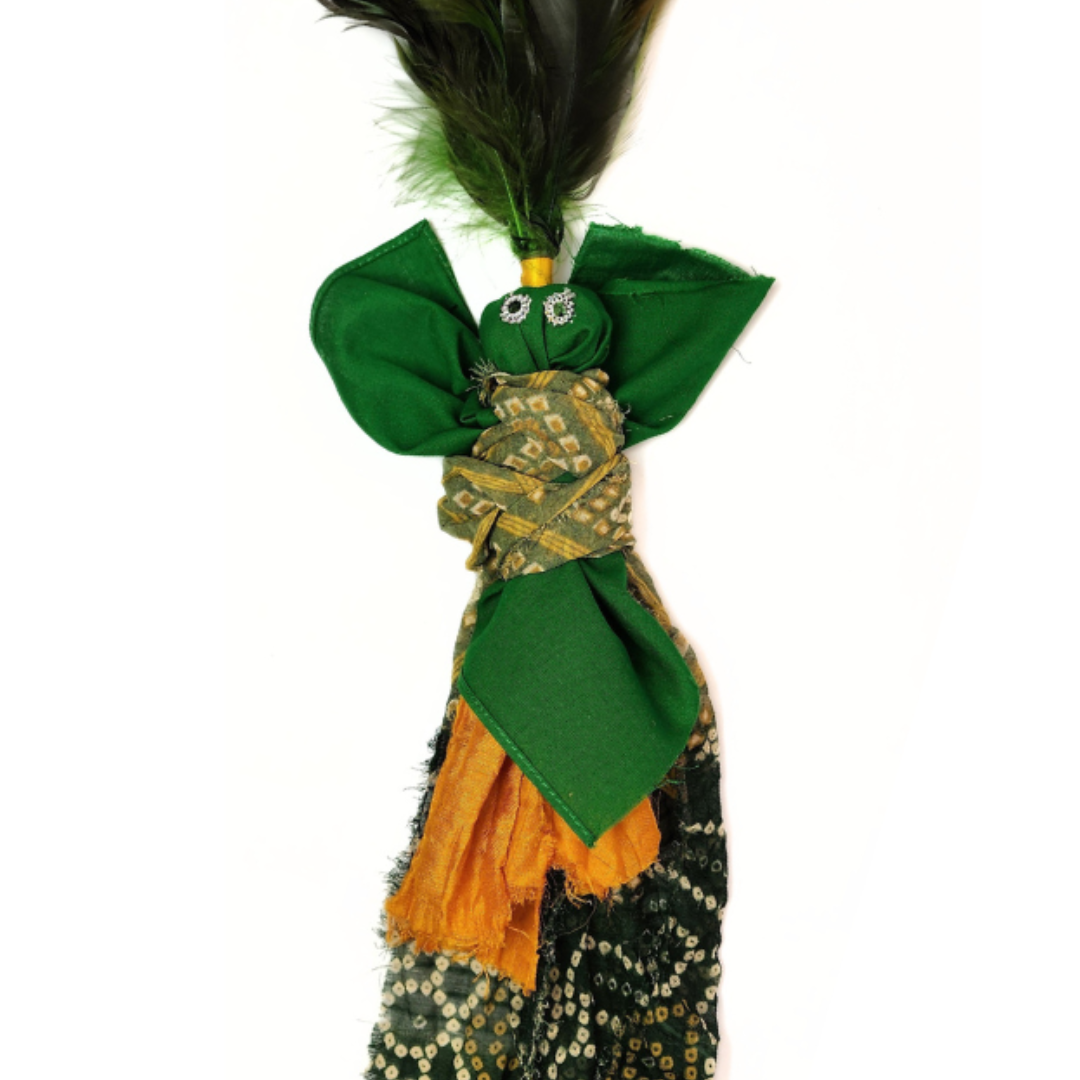 This vibrant, handcrafted Voodoo Doll is created to draw joy, abundance, and prosperity into your life. Adorned in rich green, gold, and earthy tones with powerful feather accents, this doll radiates energy aligned with growth, success, and positivity.