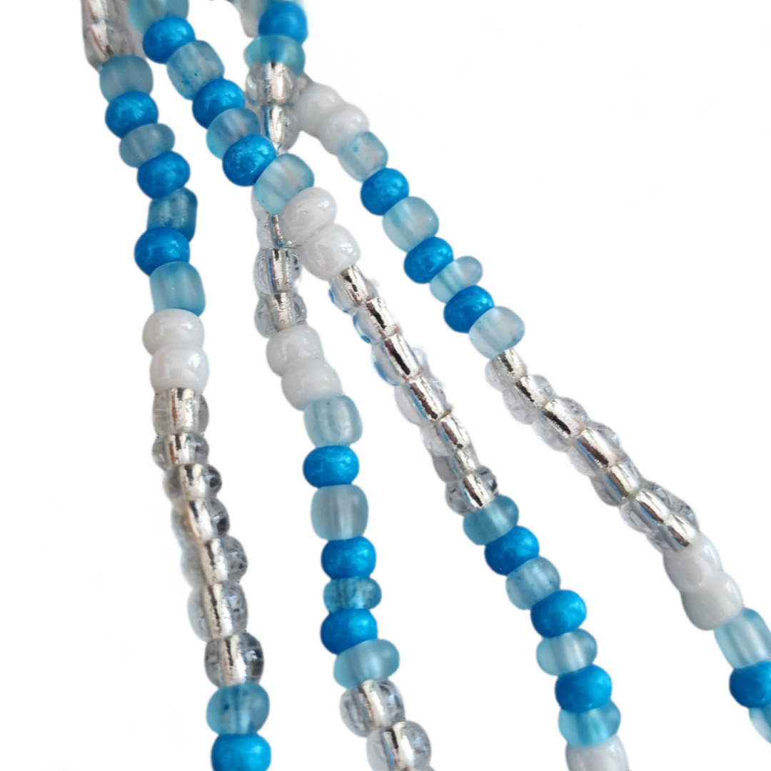 These shimmering Collares Elekes are dedicated to La Sirène, the powerful Lwa of the sea in Haitian Vodou. Known as a mystic queen of the ocean, La Sirène rules over wealth, beauty, magic, and deep spiritual mysteries. She is both enchanting and commanding—capable of granting visions, inspiration, and material blessings to those she favors.