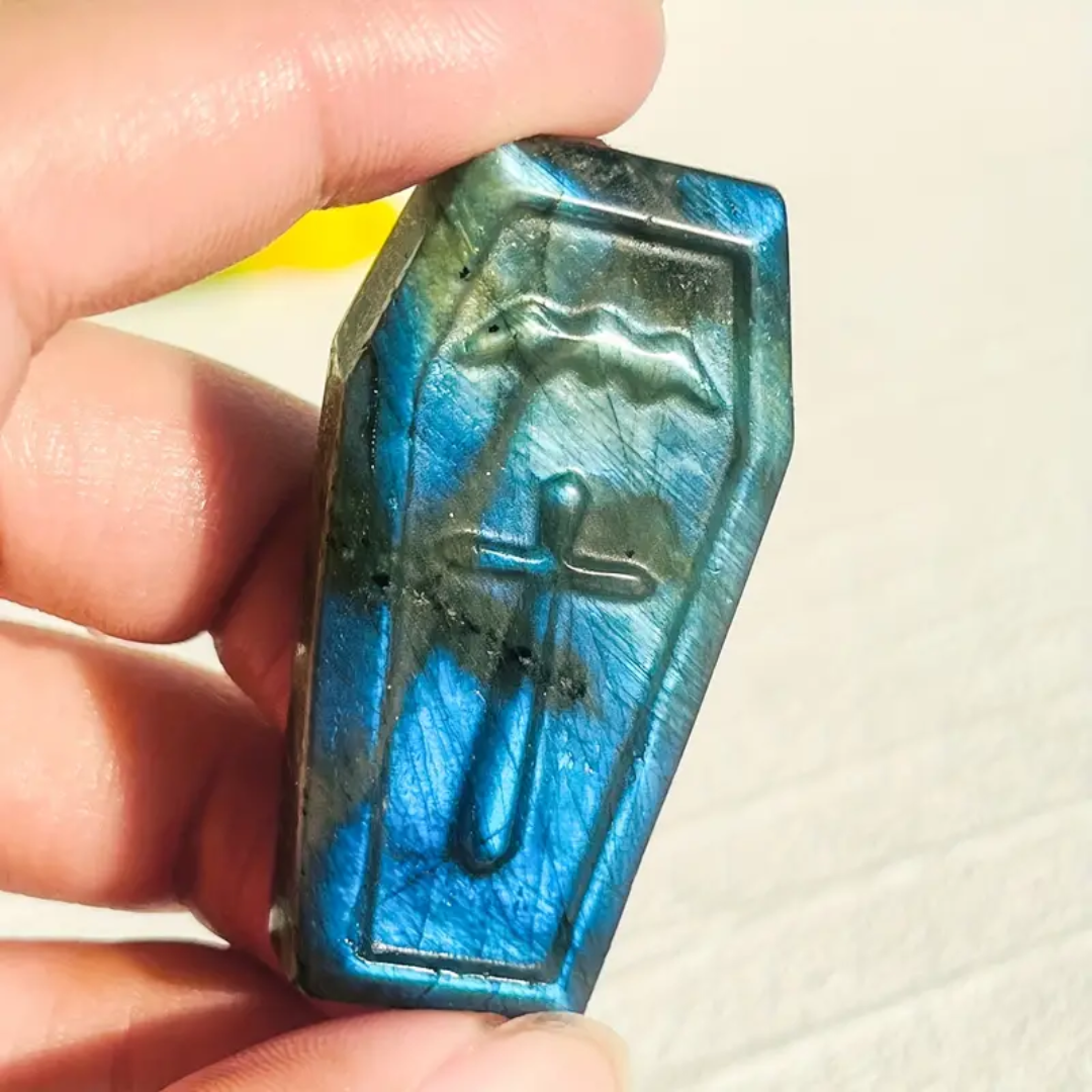 Ideal for meditation, altar displays, or carrying as a talisman, these Labradorite Coffins are a unique and powerful addition to any crystal collection. Let their mystical energy guide you through life's transitions with clarity and courage.