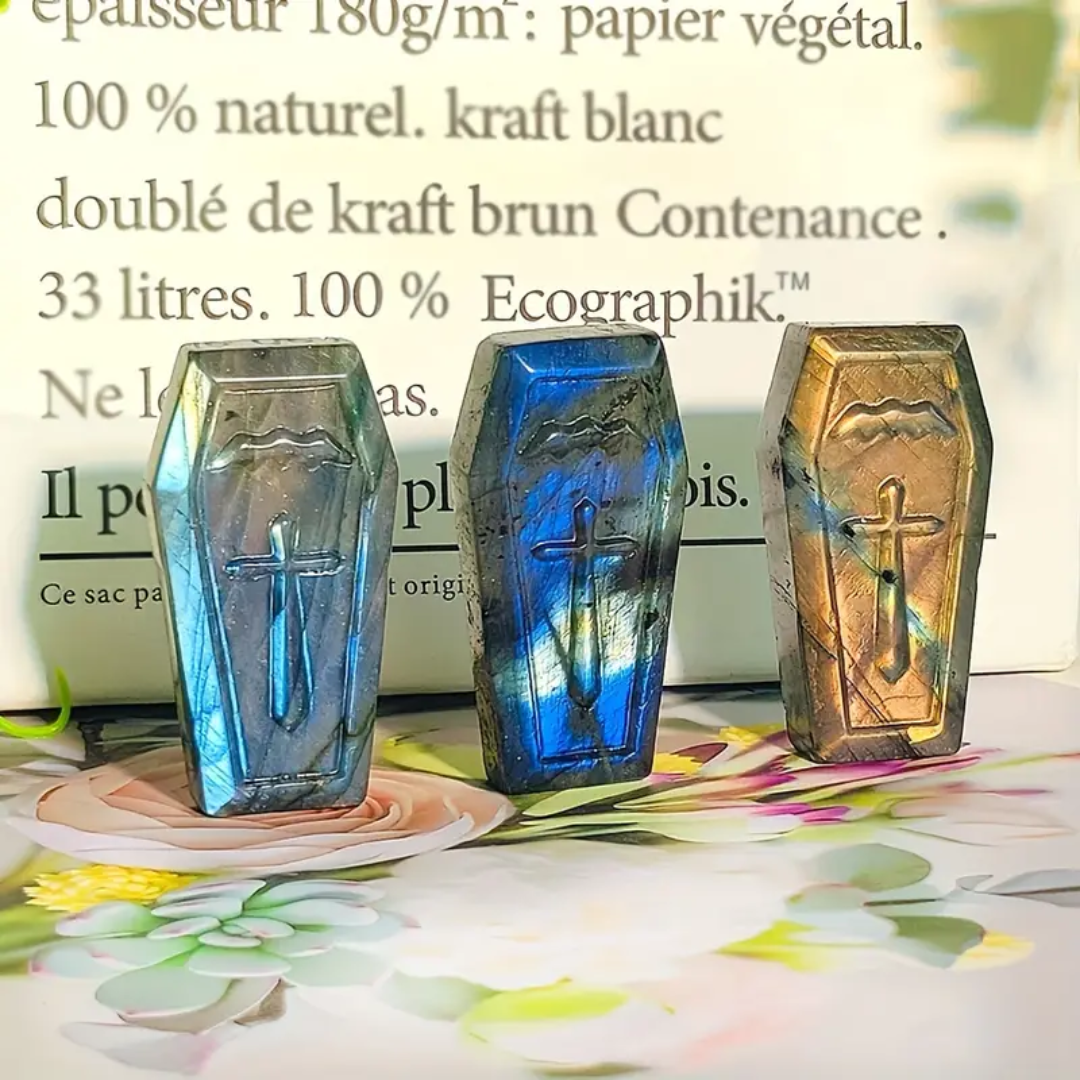 Delve into the mystical with these stunning Labradorite Coffins, powerful tools for protection, transformation, and spiritual exploration. Shaped like coffins, these crystals symbolize cycles of death and rebirth, making them perfect for shadow work, releasing old patterns, and embracing new beginnings.