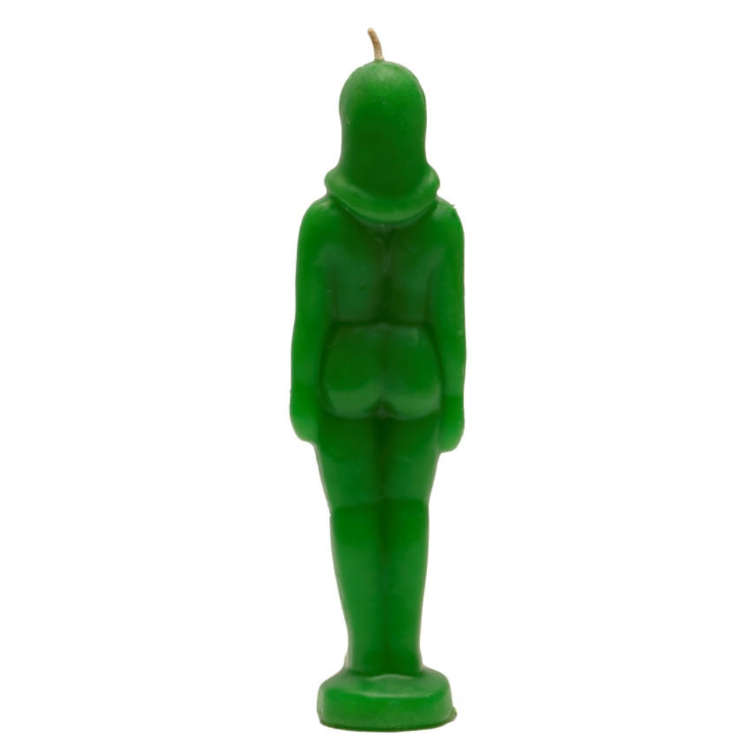A green "Lady Ritual Candle" typically signifies a spell or ritual focused on feminine energy, growth, fertility, prosperity, and abundance, with the green color representing the natural world, vitality, and manifestation of new beginnings, particularly related to wealth and financial well-being.