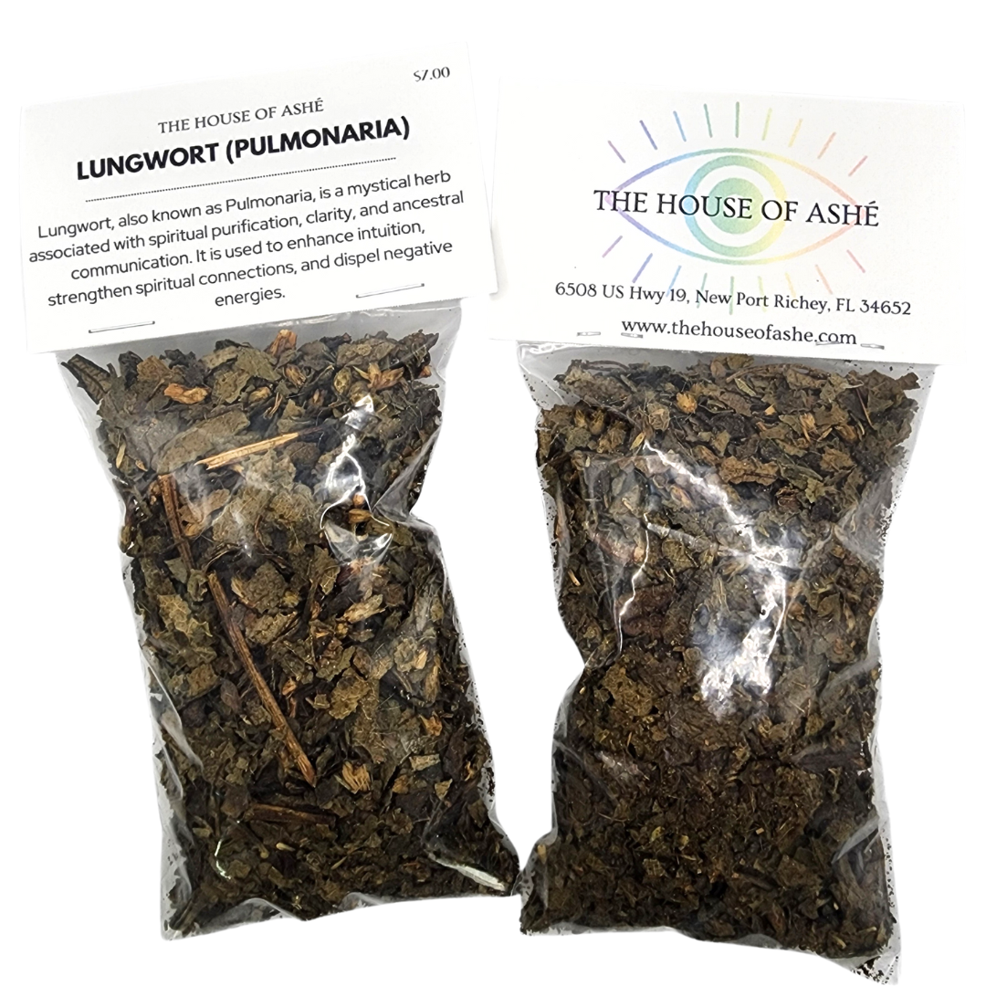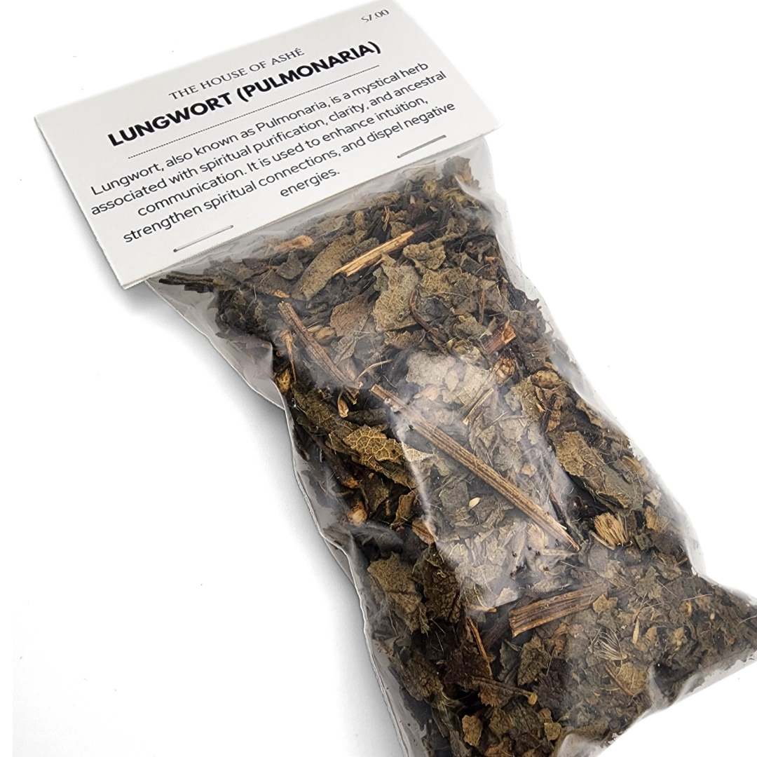 Though not one of the primary herbs in Yoruba based traditions, practitioners may use Lungwort in ritual cleansings (omiero), ancestral offerings, and divination practices to aid in clarity and open the spiritual pathways. Some may incorporate it into herbal baths or smoked rituals when seeking guidance from the Orishas or spirits of the dead.