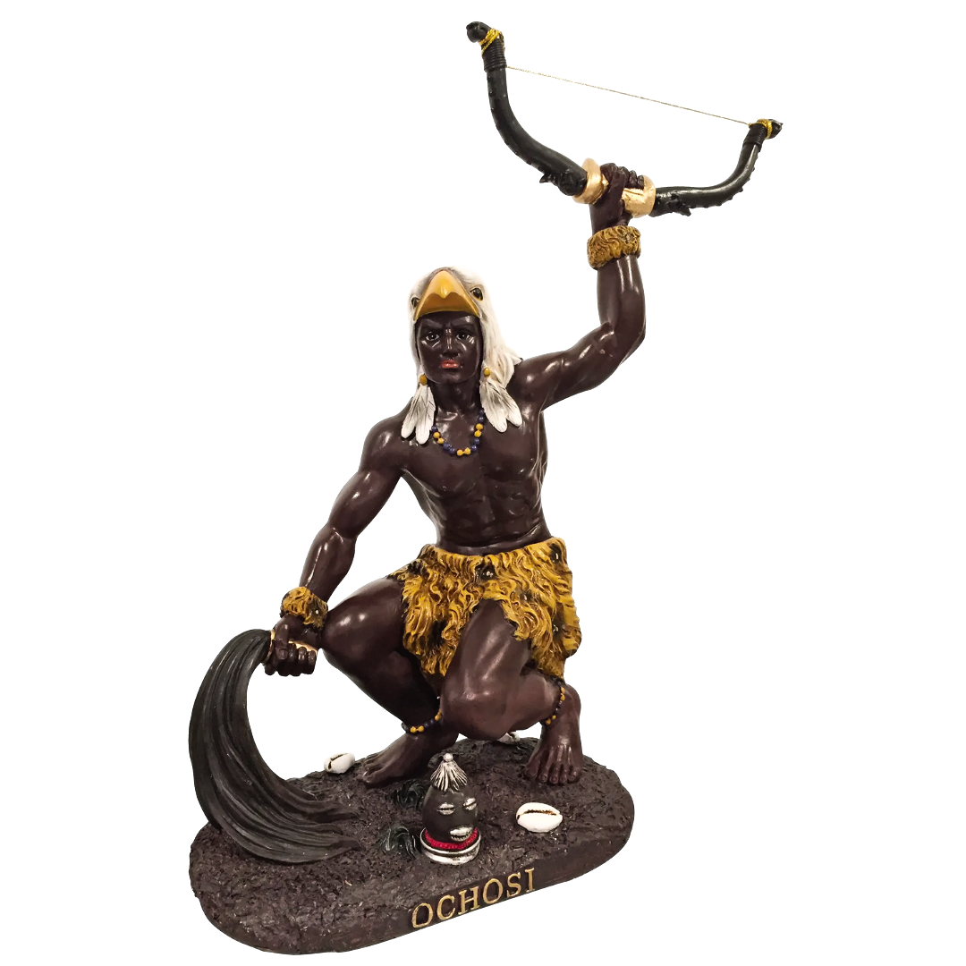 Honor the presence of Ochosi, the Orisha of justice, hunting, and divine precision, with this 12.5-inch statue. Ochosi is revered in Santeria, Lucumi, and Candomblé as a master tracker, warrior, and protector of those seeking truth, fairness, and direction in life. He is associated with swift justice, legal matters, and ensuring the righteous are protected.