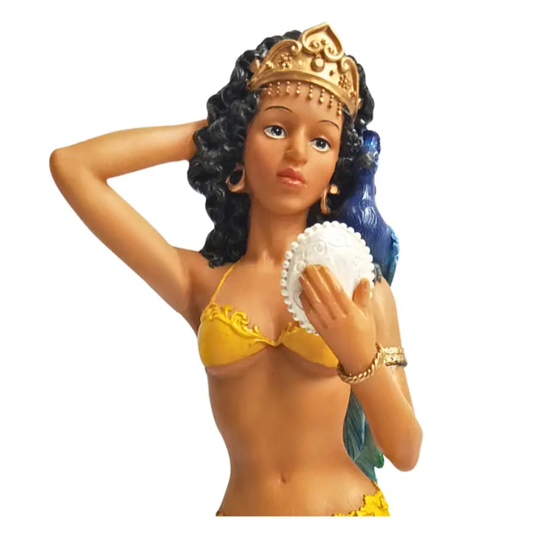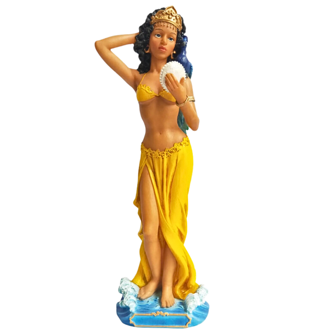 Honor the radiant and powerful presence of Oshun, the Orisha of love, beauty, prosperity, and the sweet waters, with this 12-inch statue. Oshun is revered in Santeria, Lucumi, and Candomblé as the embodiment of femininity, sensuality, and abundance, bringing joy, attraction, and blessings to those who honor her.