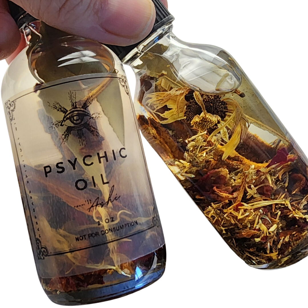 Unlock the doors to intuition and spiritual clarity with The House of Ashé Psychic Oil, our exclusive proprietary blend handcrafted with intention and reverence. Infused with carefully selected botanicals, resins, and essential oils, this mystical elixir is designed to heighten psychic awareness, enhance divination practices, and deepen your connection to unseen realms.