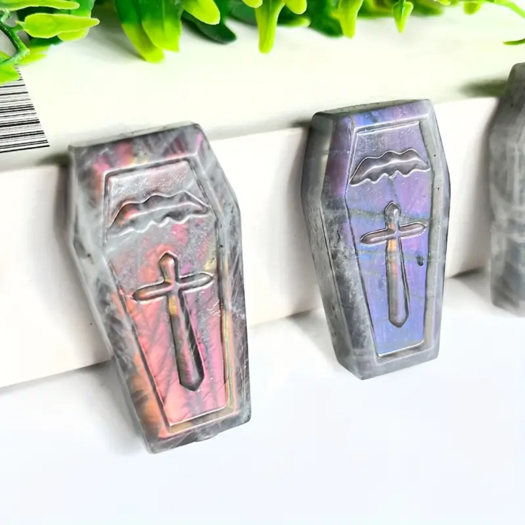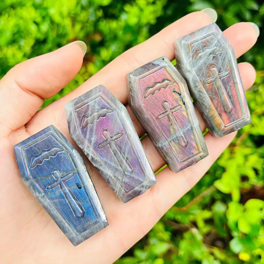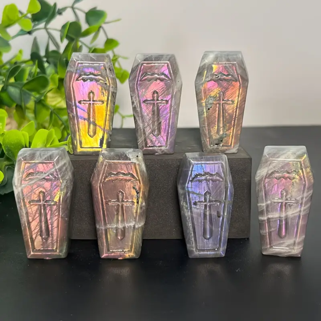 Perfect for meditation, ritual work, or as a display piece, these Purple Labradorite Coffins combine the magic of Labradorite with the deep symbolism of transformation and renewal. A rare and enchanting tool for those seeking to elevate their spiritual journey.