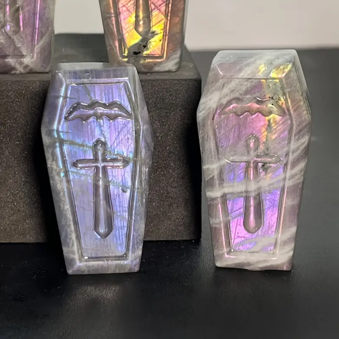 Purple Labradorite Coffins – Mystical Guardians of Spiritual Awakening