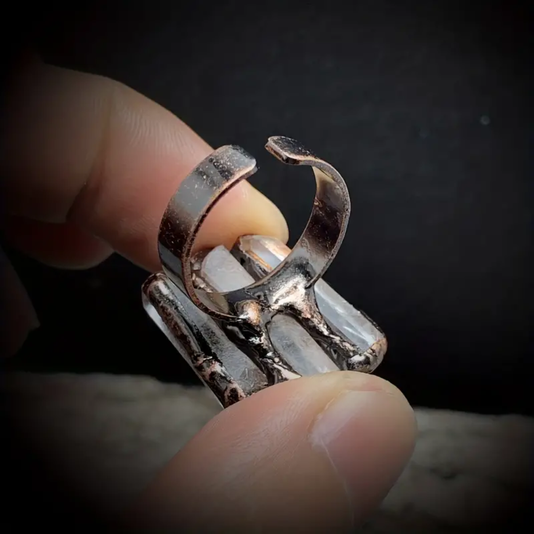 Enchanted Quartz Inlaid Bronze Cuff Ring