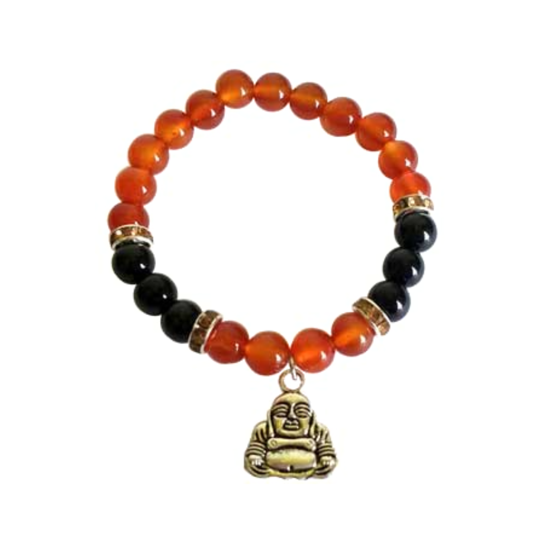 The Red Agate and Black Onyx Buddha Charm Bracelet is a potent talisman for balance, protection, and spiritual growth, blending the unique energies of its components: