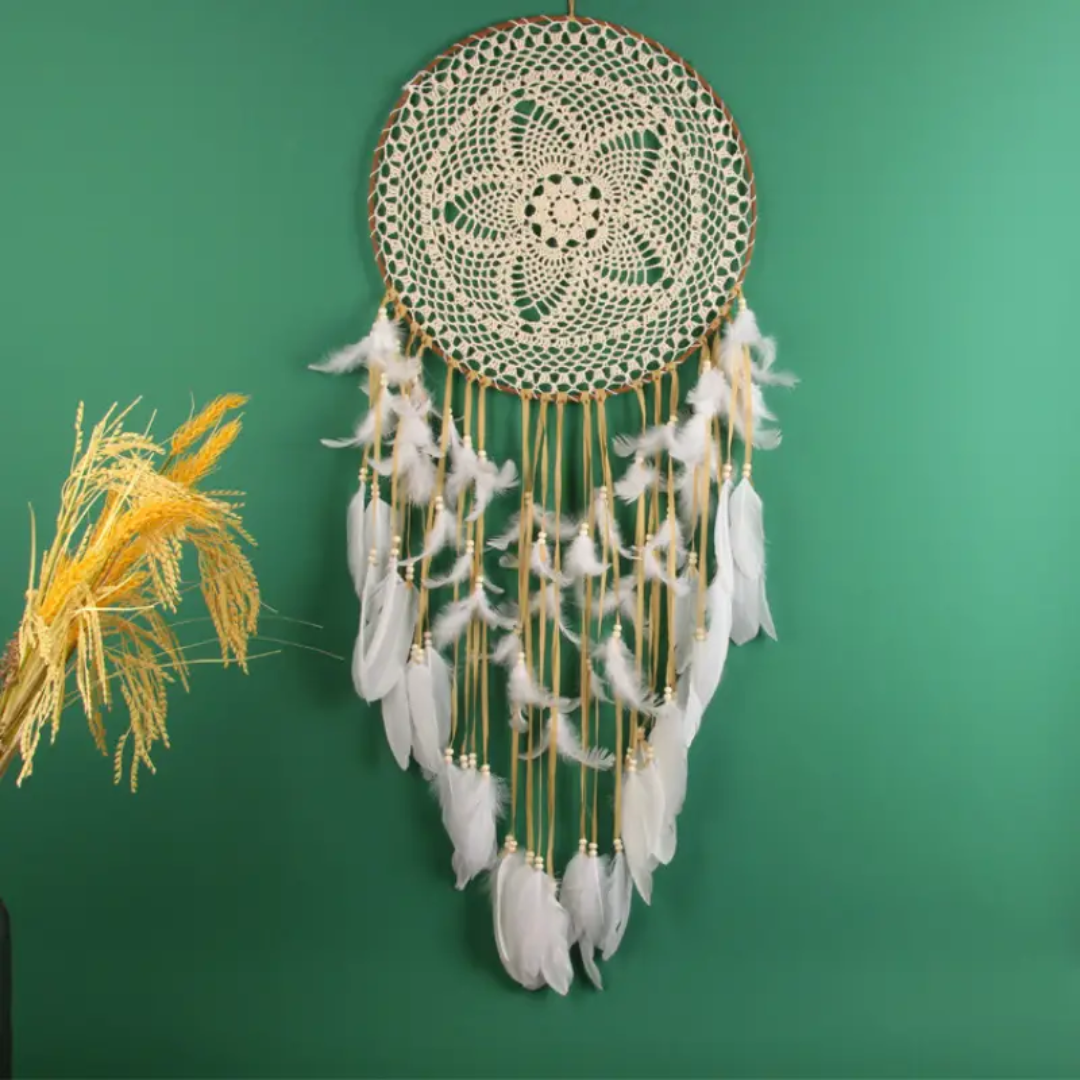 Embrace the ethereal beauty and protective magic of this Sacred Ivory Dreamcatcher, crafted to bring tranquility, spiritual purity, and protection into your space. The delicate crocheted web at the center radiates with soft, divine energy, symbolizing the weaving of peace and spiritual clarity into your life. The intricate lace-like pattern acts as a gentle filter, capturing negative energies and transforming them, allowing only calming, harmonious dreams to flow through.