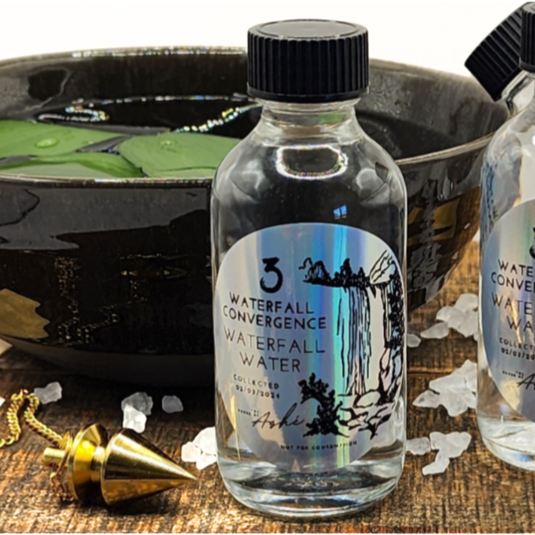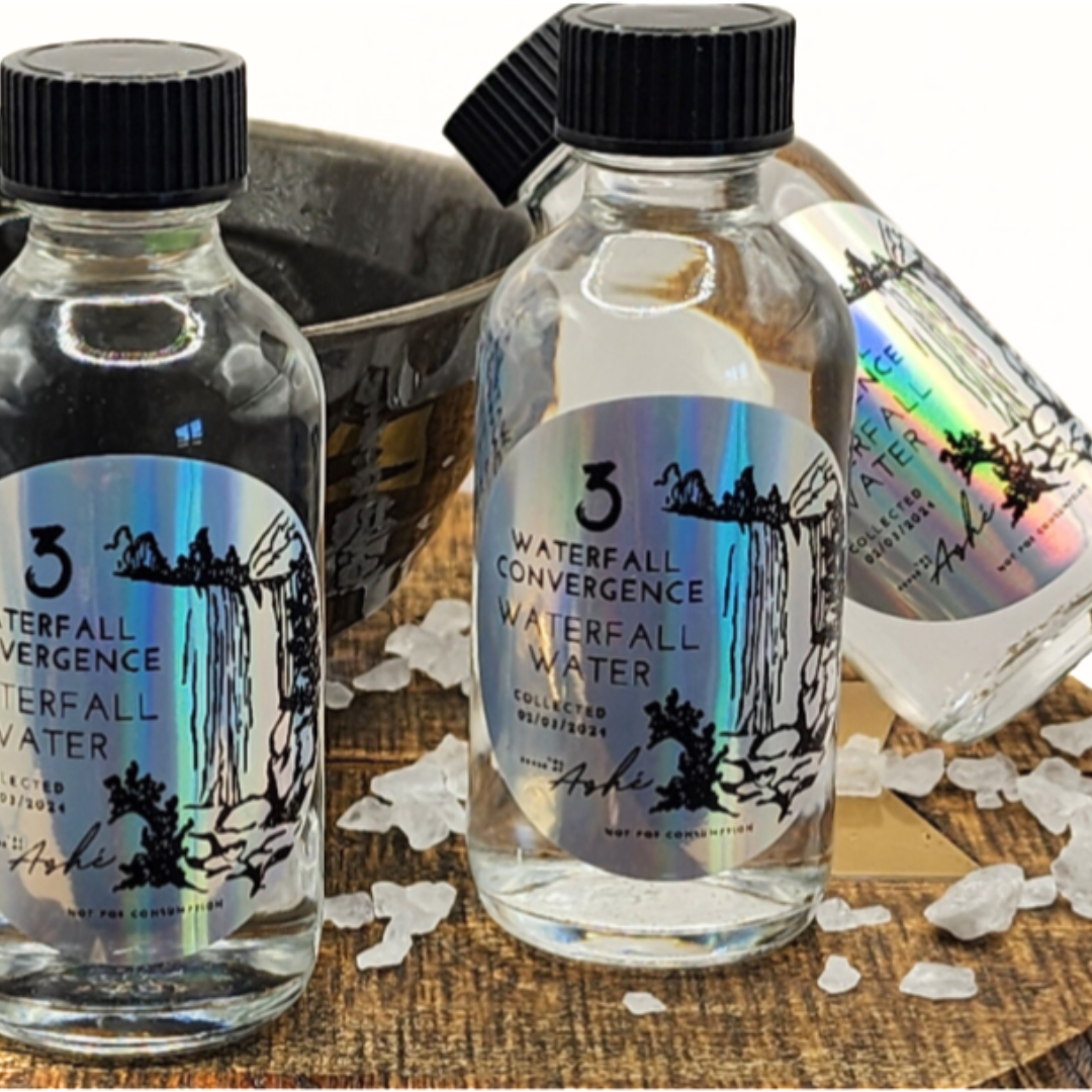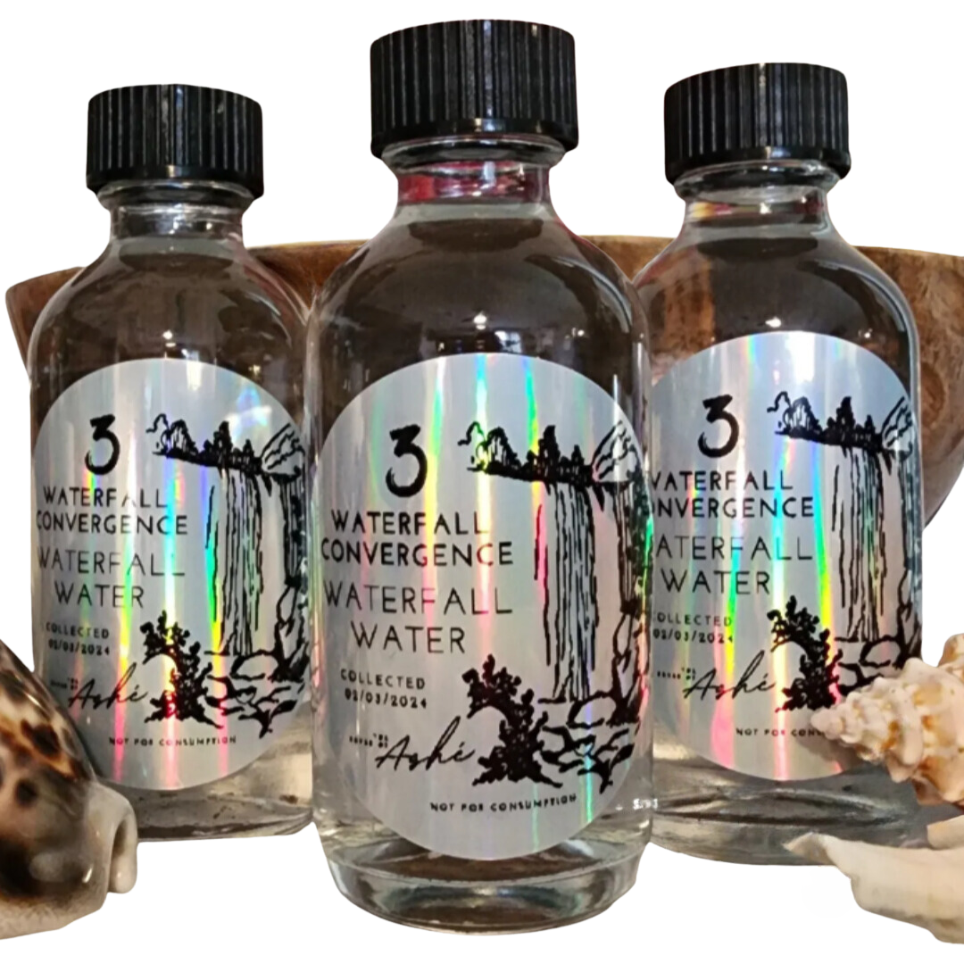 This rare and potent 3 Waterfall Convergence Water is hand-collected and bottled by The House of Ashé from a sacred site where three waterfalls merge into one. This water carries the spiritual essence of unity, balance, and amplified energy, drawing upon the forces of nature to cleanse, heal, and empower.
