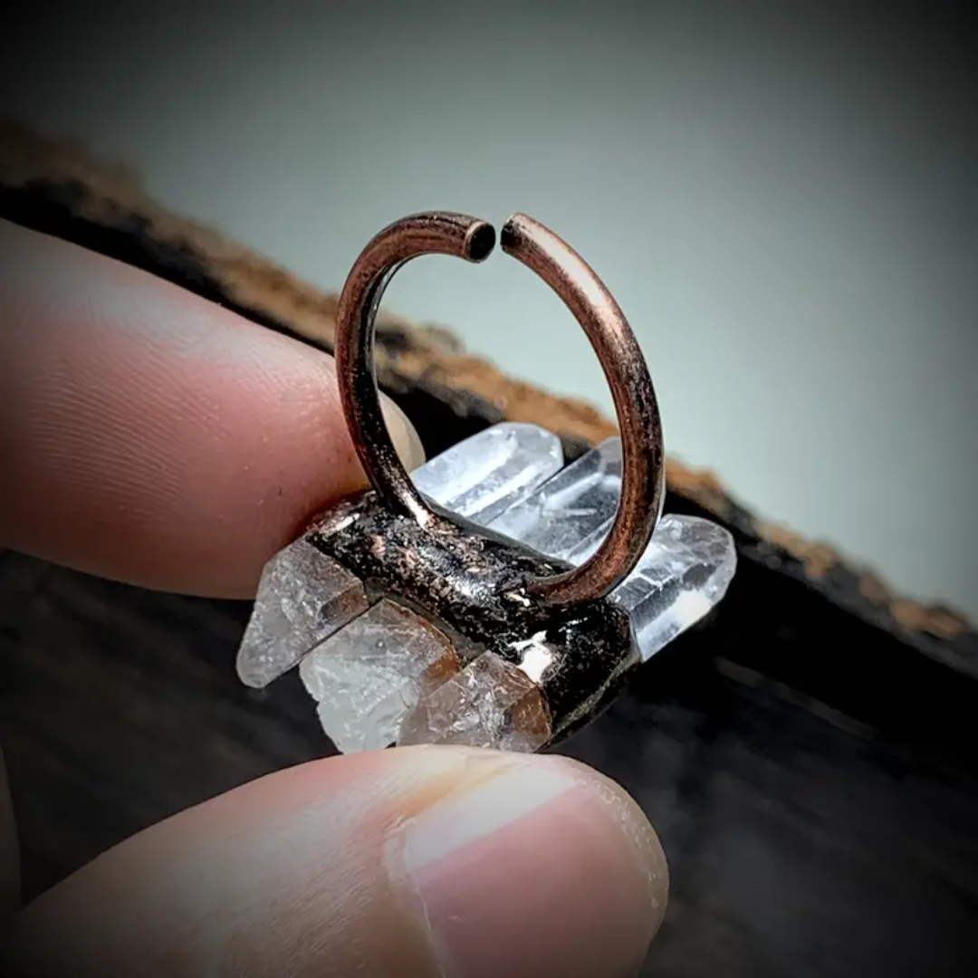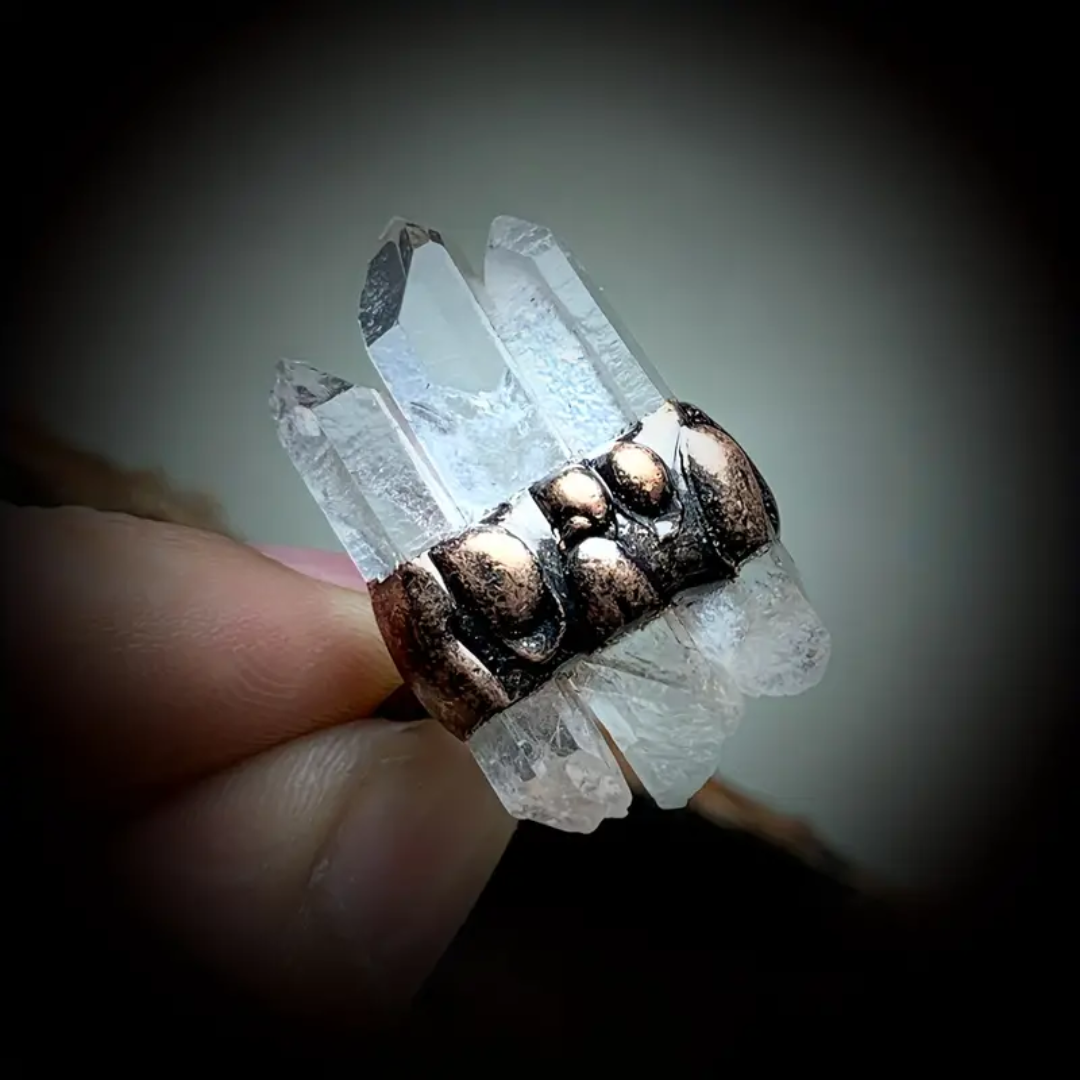 This ring is more than an accessory; it’s a conduit for cosmic energy. The clear quartz crystals are believed to amplify energy, thoughts, and the effects of other crystals, aligning your spirit with celestial harmony. Whether you seek to enhance your intuition, attract positive energies, or simply adorn yourself with a piece of otherworldly elegance, this ring is your gateway to the mystical realms.