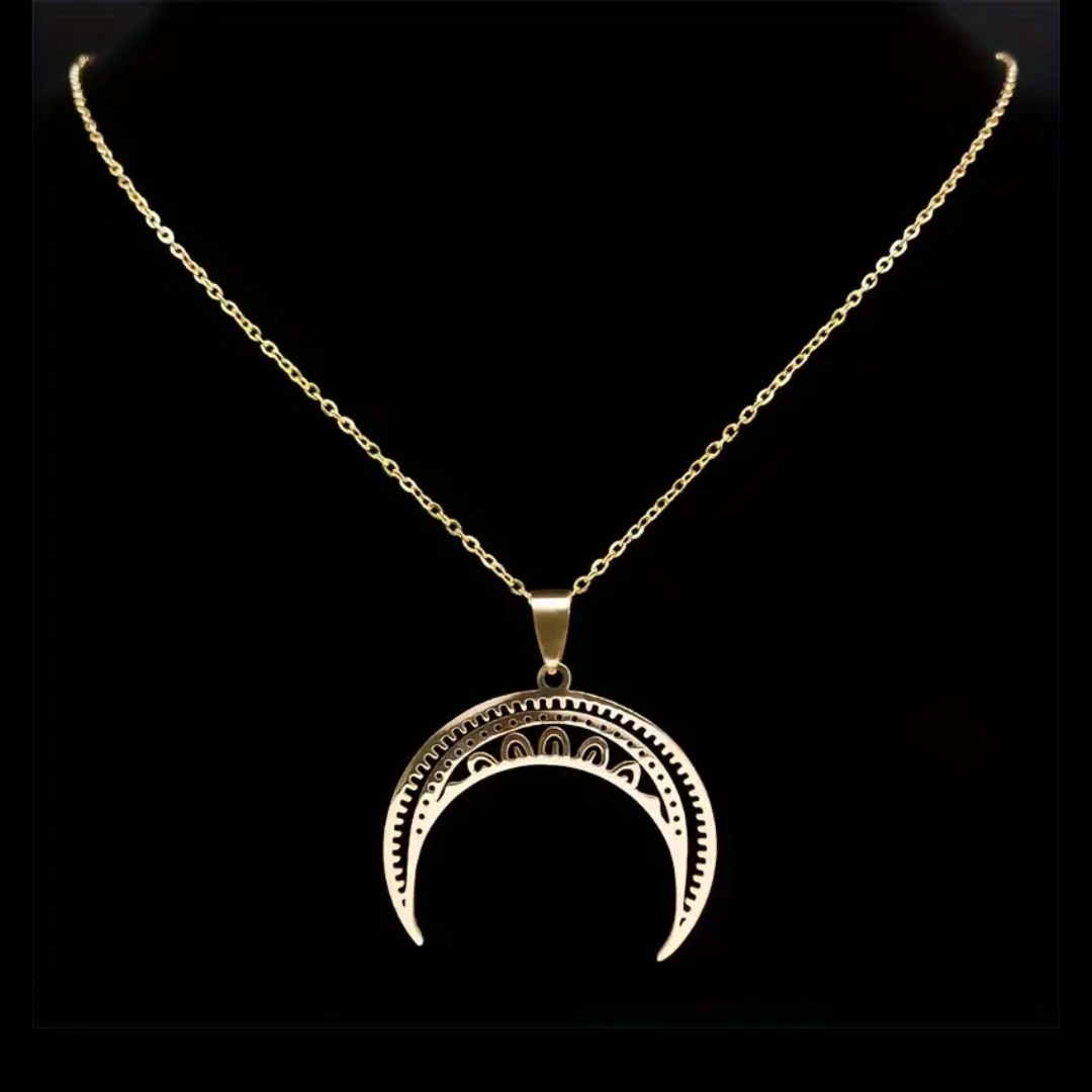 The "Celestial Crescent Moon Amulet" is a mesmerizing piece that radiates lunar energy and celestial elegance. Crafted in gold-tone metal, the pendant features a beautifully detailed crescent moon, symbolizing intuition, transformation, and the rhythmic flow of the universe. Its intricate patterns evoke ancient symbols of protection and divine balance, making it a powerful talisman for those seeking guidance and harmony. Suspended on a delicate chain, this amulet invites its wearer to connect with the mysteries of the cosmos and channel the moon's gentle yet transformative power. Perfect for those attuned to lunar cycles and spiritual exploration.