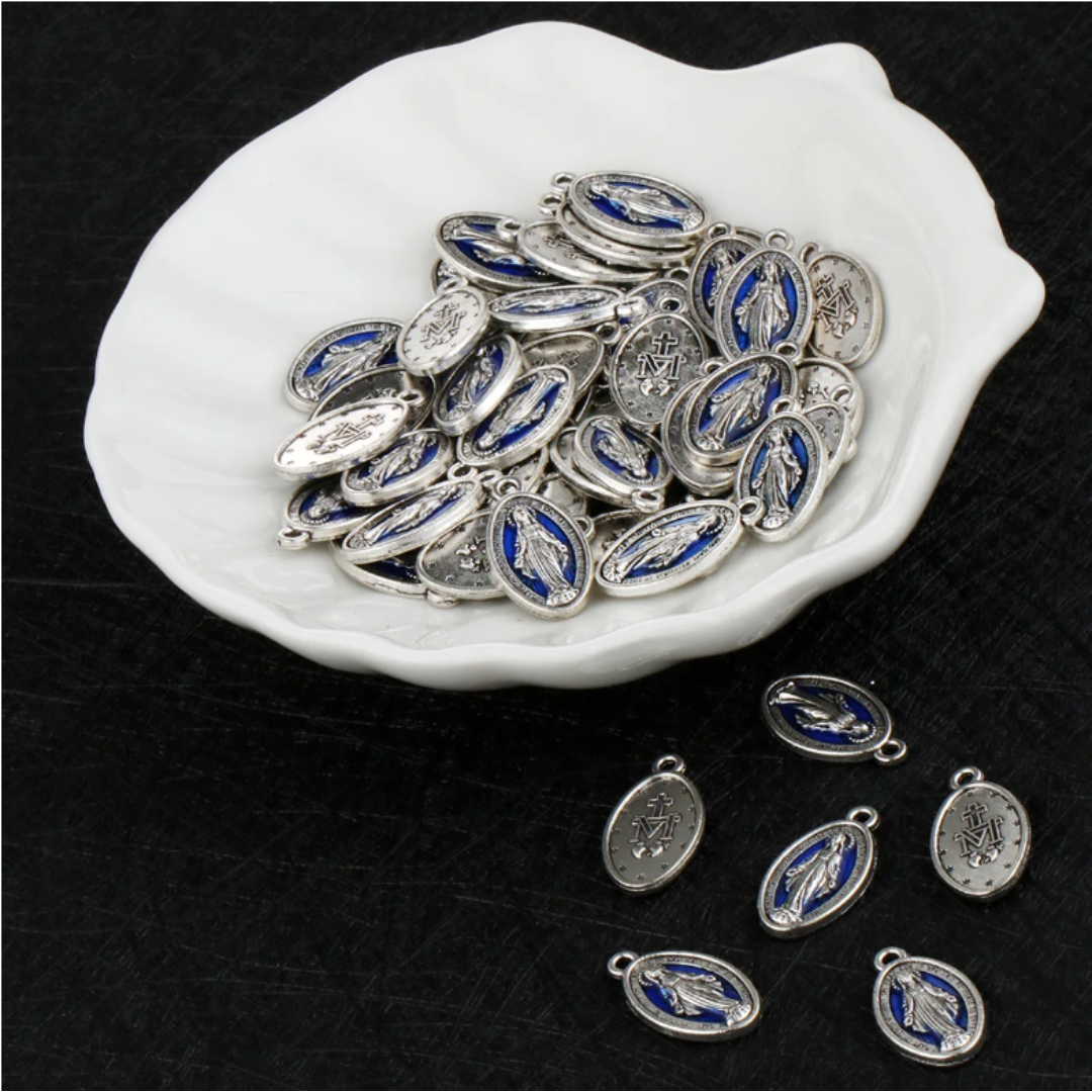 Blue Enamel Virgin Mary Miraculous Medal Spiritual Talisman Charm