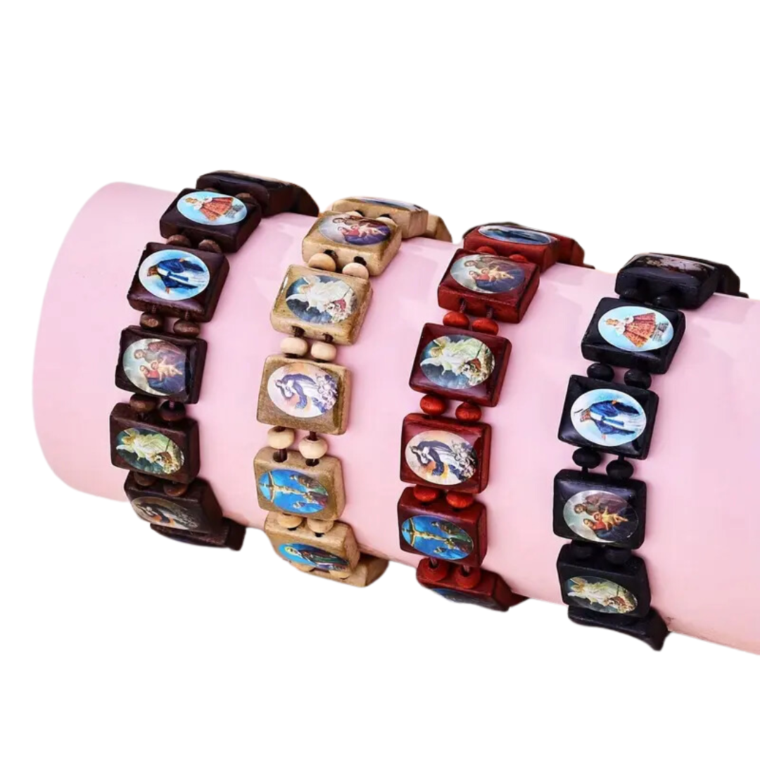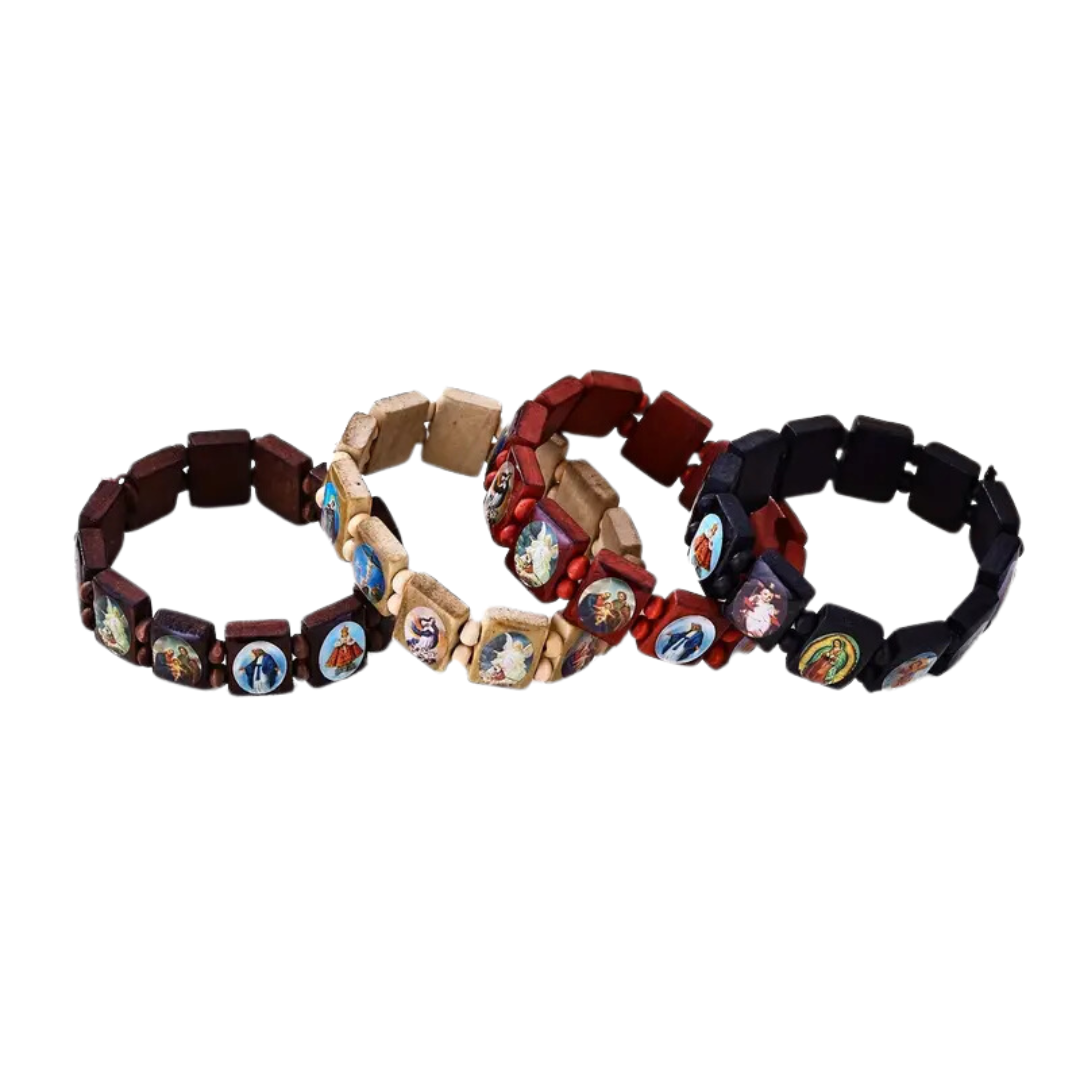 Carry the blessings of faith and devotion wherever you go with these beautifully crafted Wood Saint Bracelets. Each bracelet features a series of vibrant saint images embedded in wooden panels, connected with elastic for a comfortable, adjustable fit. Available in a variety of rich wood tones—including black, brown, red, and beige—these bracelets are perfect for daily wear or as a meaningful addition to your spiritual practice.